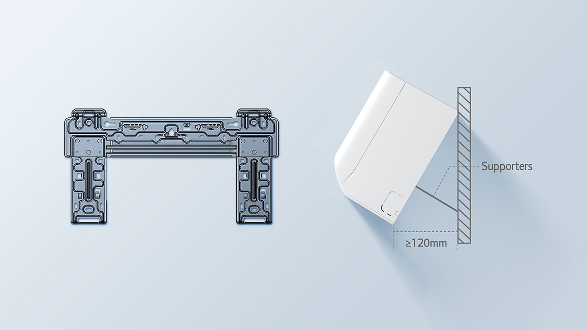 El diseño π del soporte permite colgar y mover fácilmente el BreezeIN para su instalación.