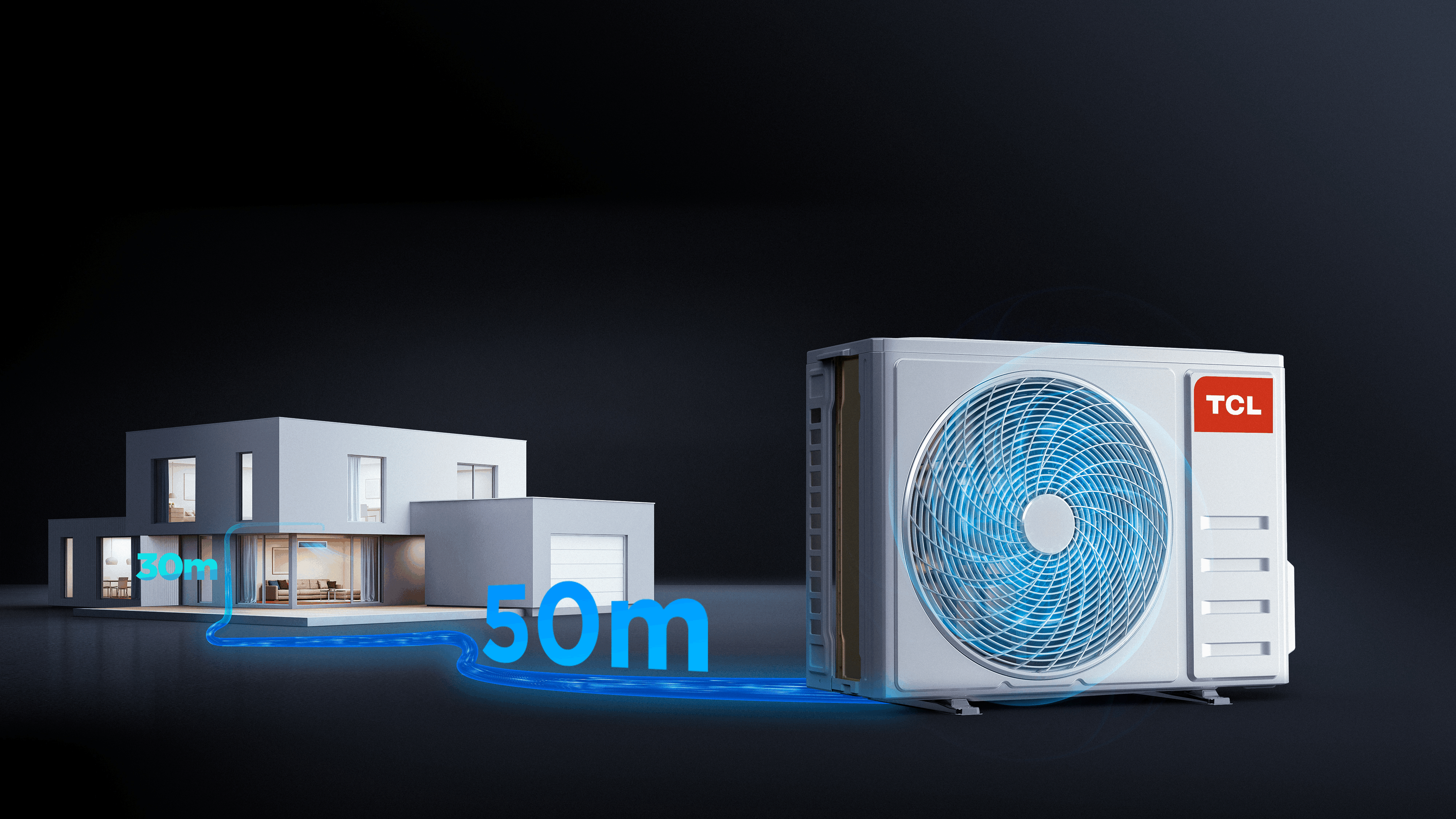 La amplia longitud de la tubería del equipo inverter puede alcanzar los 50 m horizontales y 30 m verticales de diferencia de altura entre IDU (unidad interior) y ODU (unidad exterior).