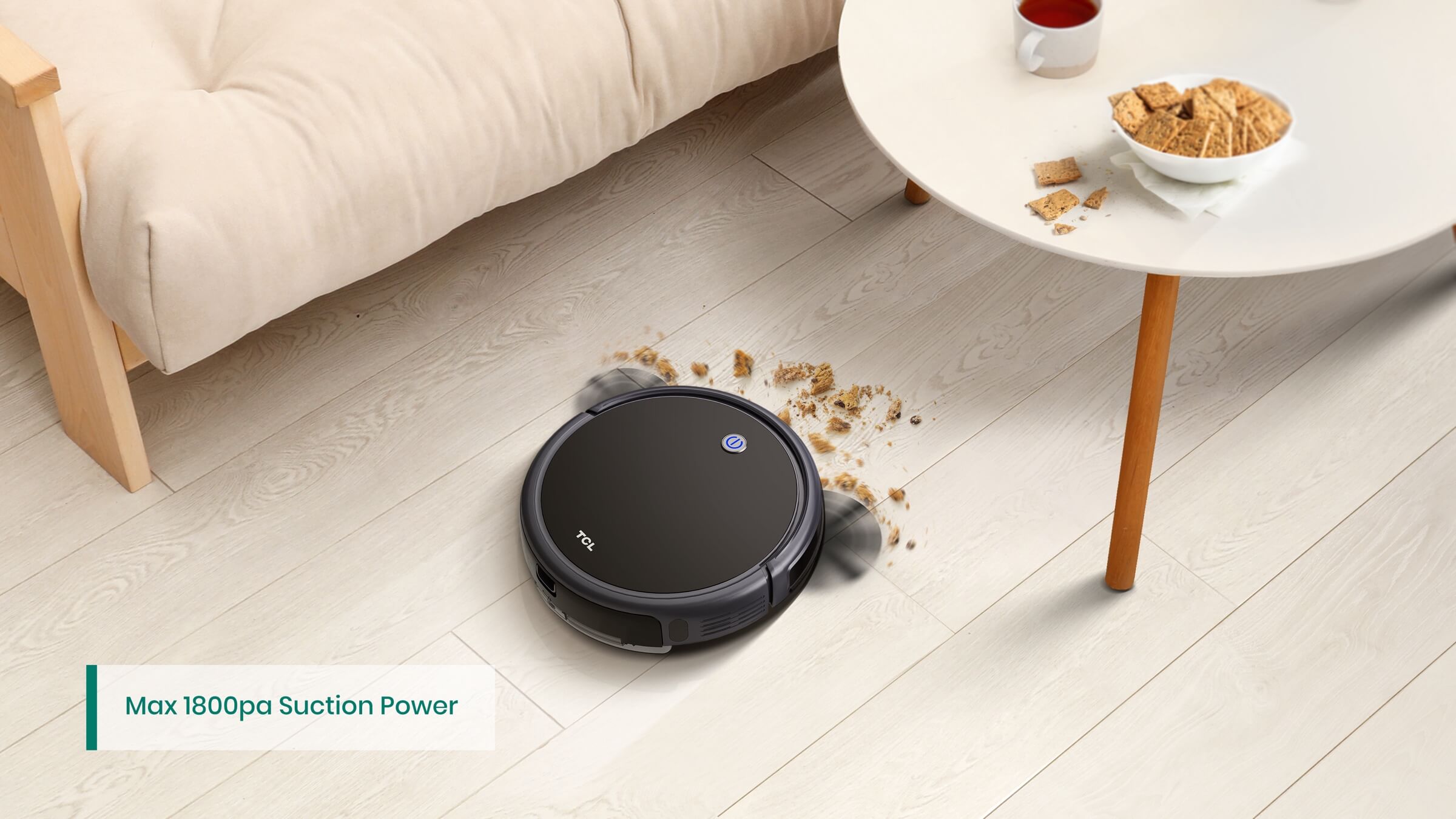 Max 1800Pa suction power can easily and efficiently pick up dust, pet hair and debris.