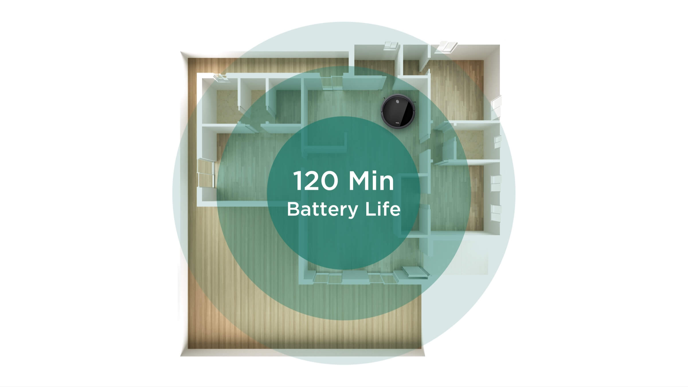 120 min run time on a single charge. *Sweeva device is tested operating under standard suction power on hard floor