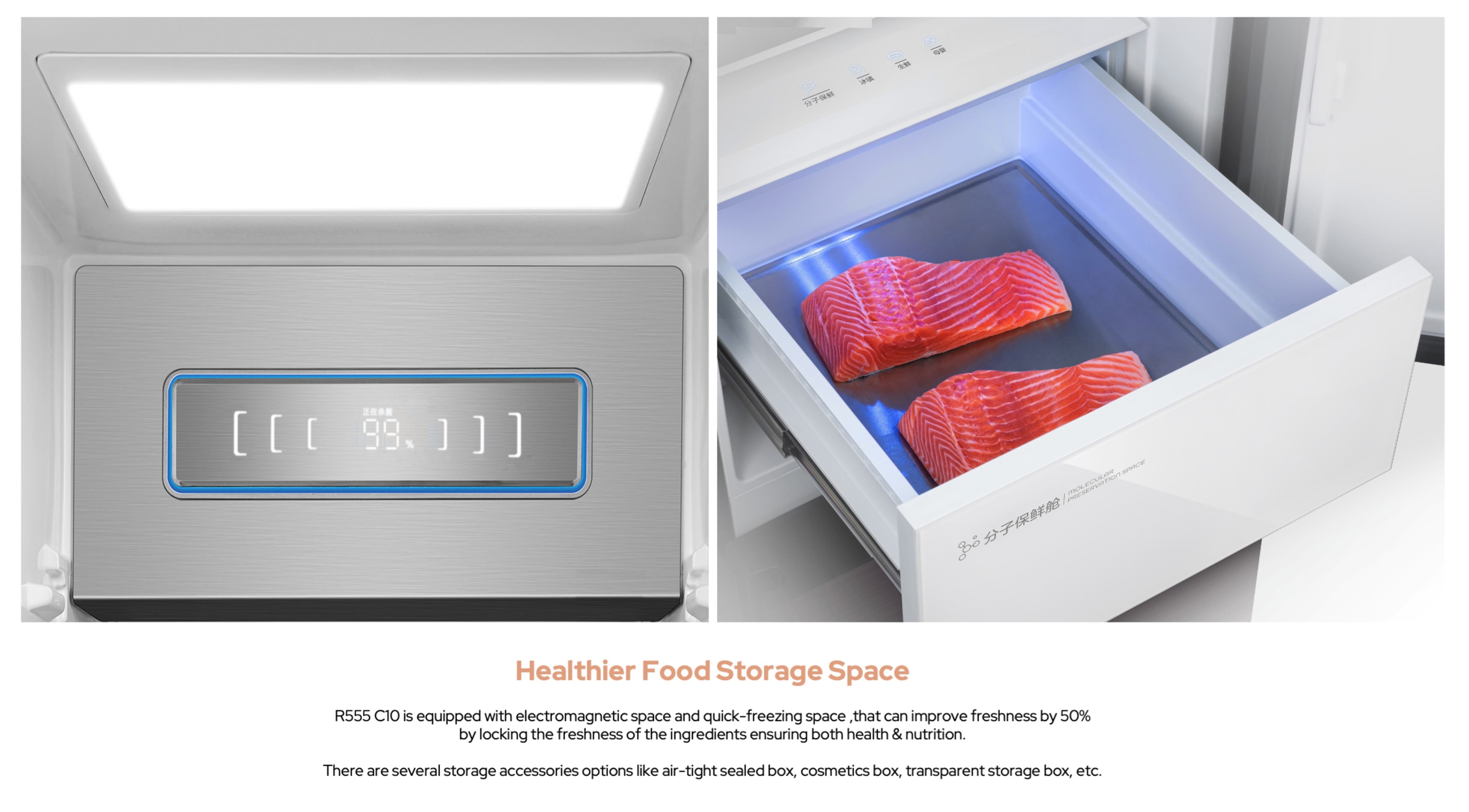 The R555 C10 Refrigerator series gives the side-by-side refrigerator a new charm with aesthetics inspired by Asian symmetry combined with modern design aesthetics.