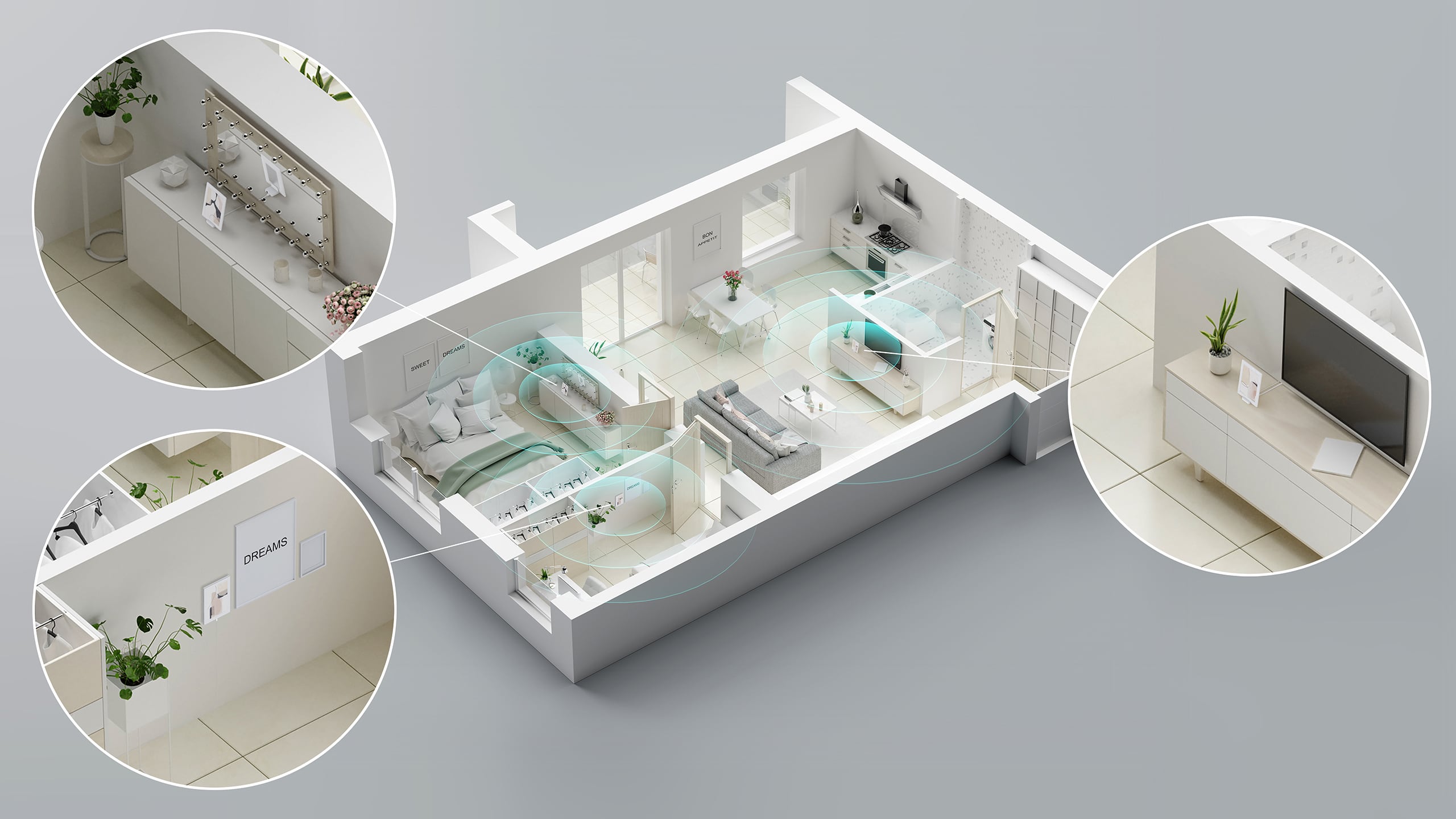 TCL Ultrathin Mesh Router is a versatile Wi-Fi mesh router that provides wide and reliable Wi-Fi coverage. Discarding the traditional bulky appearance of a router, the Ultrathin Mesh Router takes shape of decorative art pieces on the wall with exquisite and interactive design elements to make the user experience more playful and enjoyable. The metal sheet on the back is for cooling and installation. The magnet and base mechanism allows users to insert photographs, hang them on a wall, and connect them to the desk base. TCL Ultrathin Mesh Router will automatically access and manage the smart home products of the whole family on TCL Home App.
