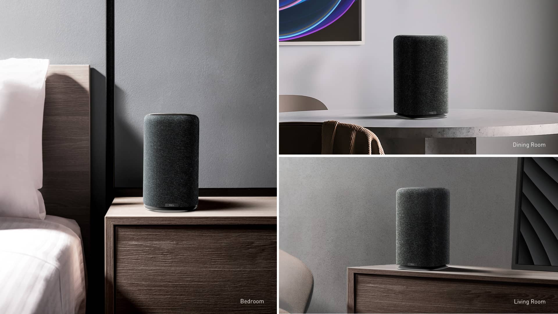TCL W73 is a speaker that features a Hi-Fi desktop audio system and a premium home stereo experience. The speaker can be grouped with other TCL audio devices to make a comprehensive audio system. The naked-eye 3D interactive light effect on the top of the W73 wireless speaker creates a vivid and high-tech feeling for the product. We're going for that 'WOW' effect.