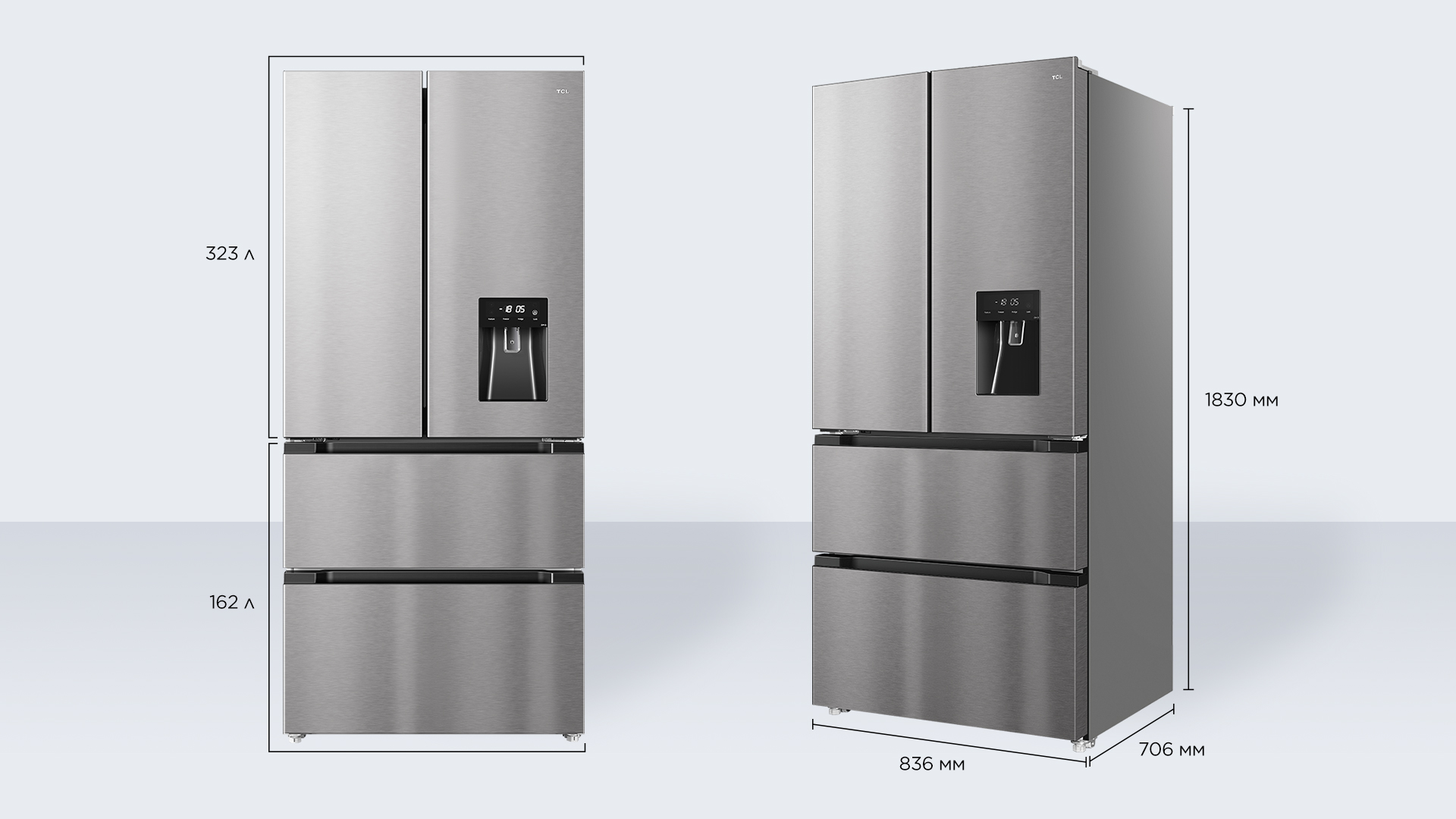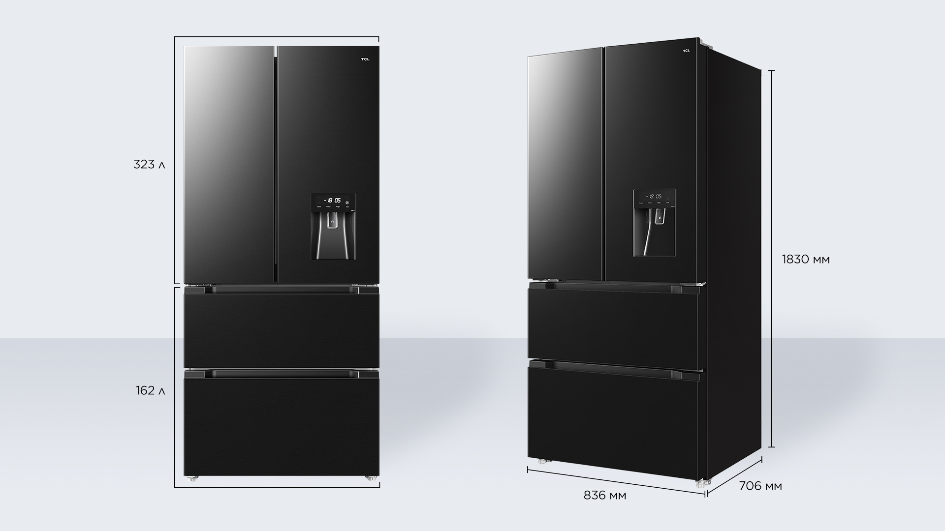Двери холодильника открываются на 90°, обеспечивая удобный доступ к продуктам, что делает его стильным дополнением к вашему интерьеру.