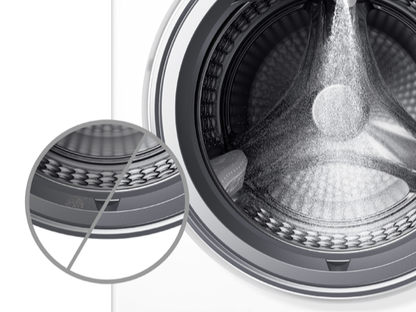 Струя воды смывает пену и остатки моющего средства, оставшиеся на уплотнителе дверцы. Остается только здоровая среда, гарантирующая эффективную стирку.