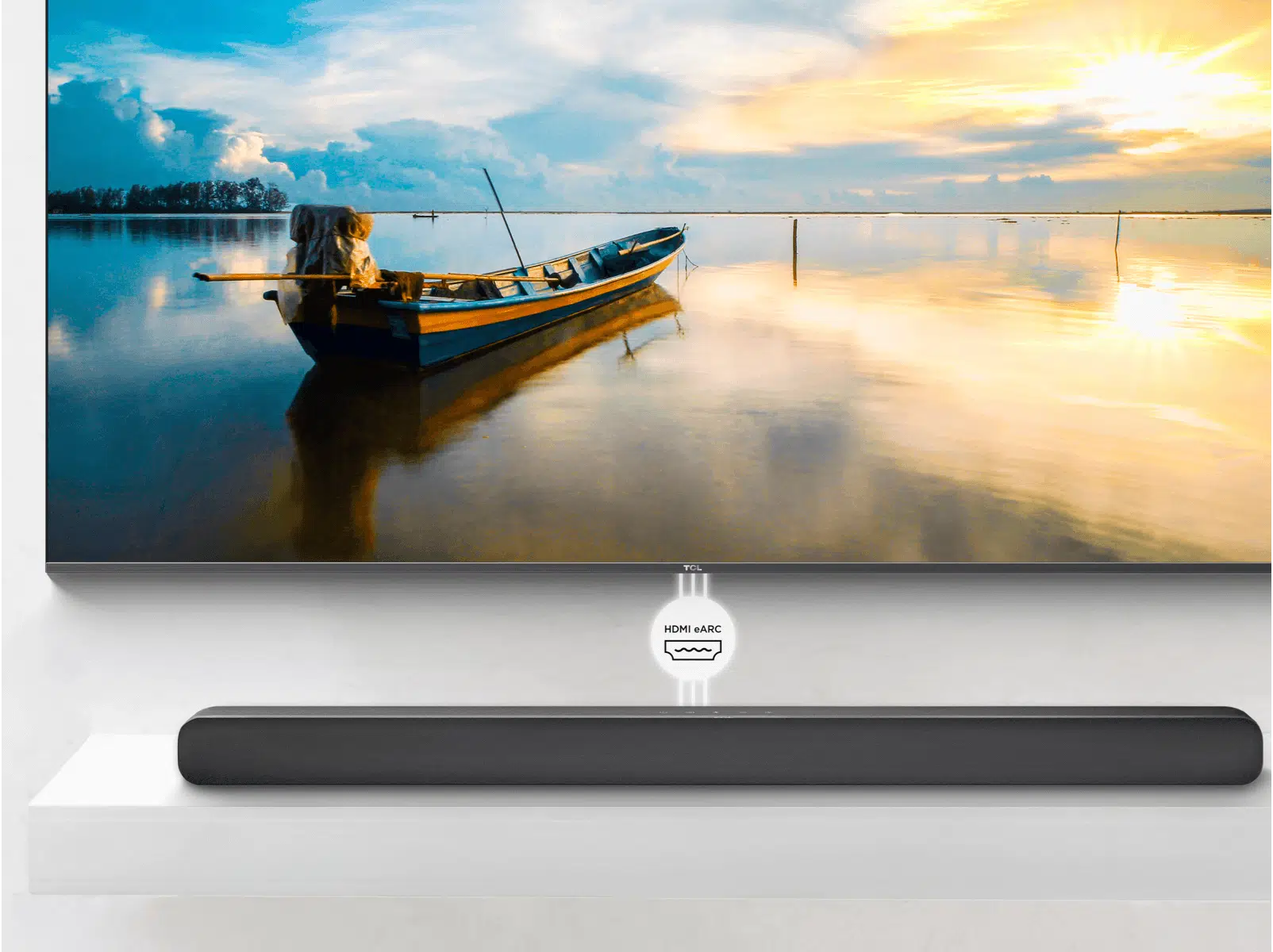 Ein einziger Kabelanschluss mit Enhanced Audio Return Channel (eARC) ermöglicht es Ihrer Soundbar, fast alle verfügbaren Tonformate zu unterstützen und erlaubt Ihrem Fernseher, Ihre Soundbar automatisch zu steuern. Kein Jonglieren mit verschiedenen Fernbedienungen mehr.
