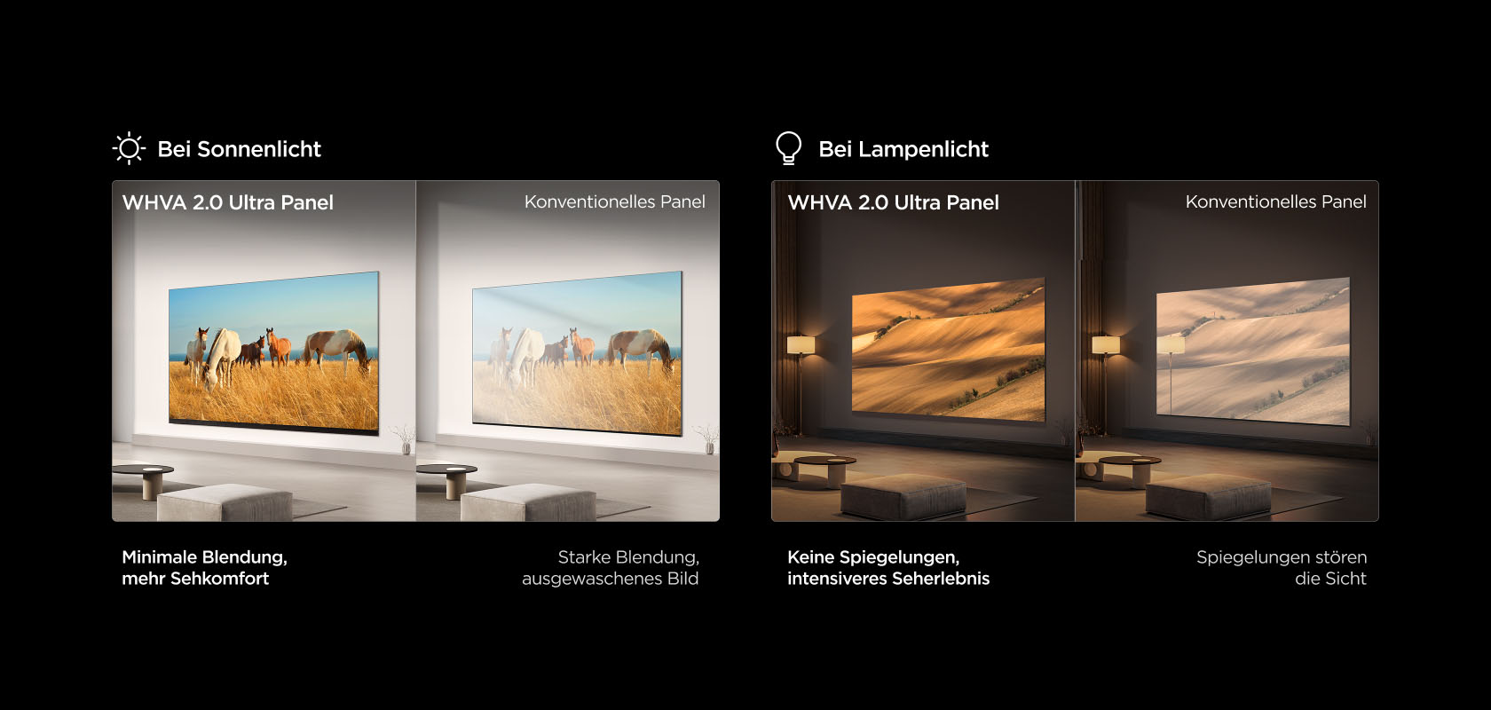 *Die Vergleichsbilder dienen ausschließlich der Veranschaulichung der jeweiligen Displaytechnologien und können vom tatsächlichen Anzeigeergebnis des Fernsehers abweichen. Maßgeblich ist die Darstellung auf dem tatsächlichen Gerät.