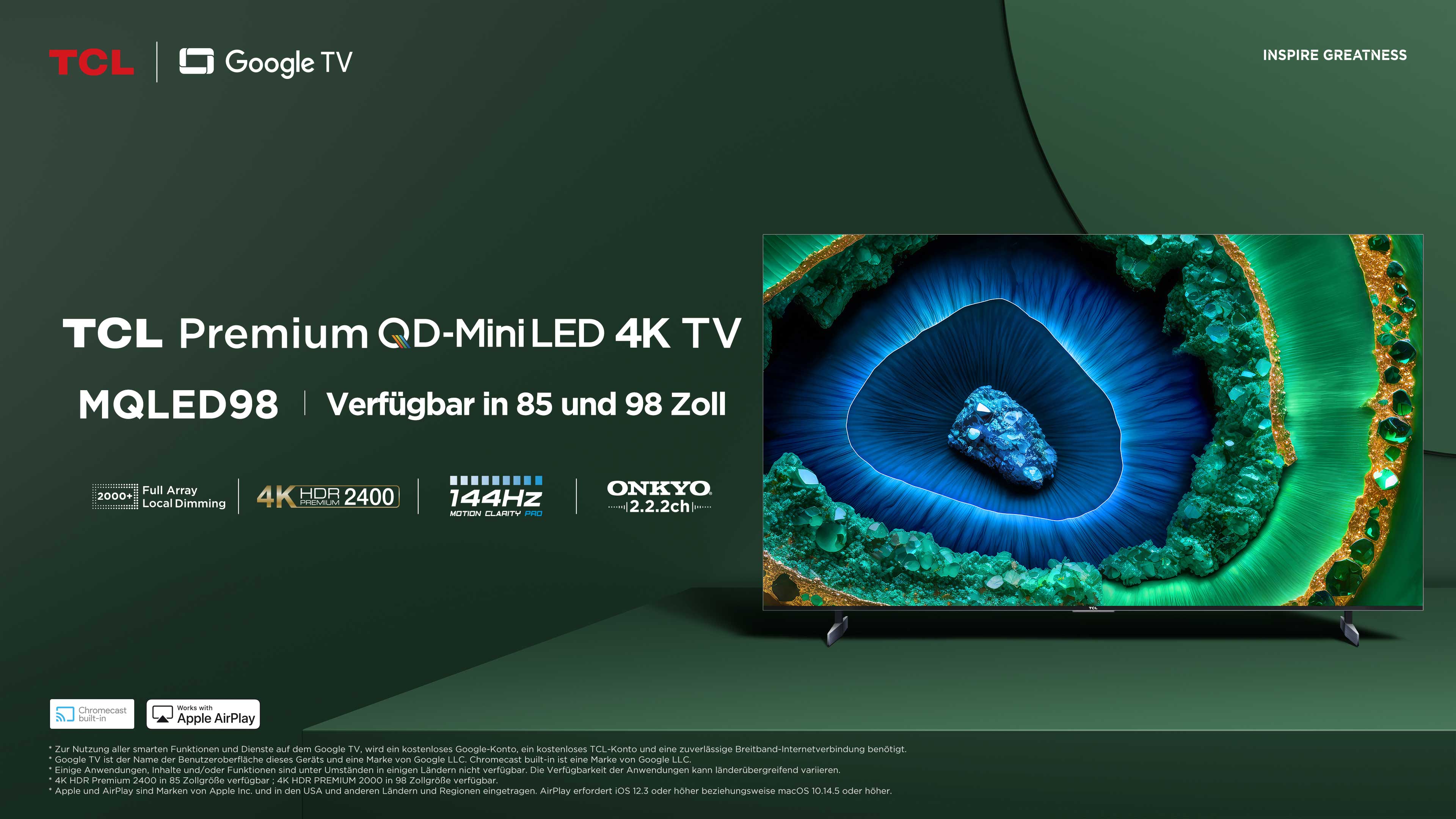 Der TCL MQLED98 ist mit mehr als 2000 lokalen Dimmzonen ausgestattet und sorgen für eine präzise Lichtsteuerung und atemberaubende sowie naturgetreue Details.