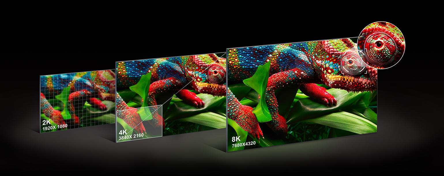 8K geht weit über die Norm hinaus und bietet eine viermal höhere Detailgenauigkeit als 4K-Modelle und eine 16-mal höhere Präzision als Full HD. Die Auflösung von 7680 x 4320 stellt die kleinsten Gesten in den Mittelpunkt des Geschehens und ermöglicht es den Zuschauern, ihre Lieblingsfilme und -fernsehsendungen wie nie zuvor mit 8K-Inhalten zu genießen.