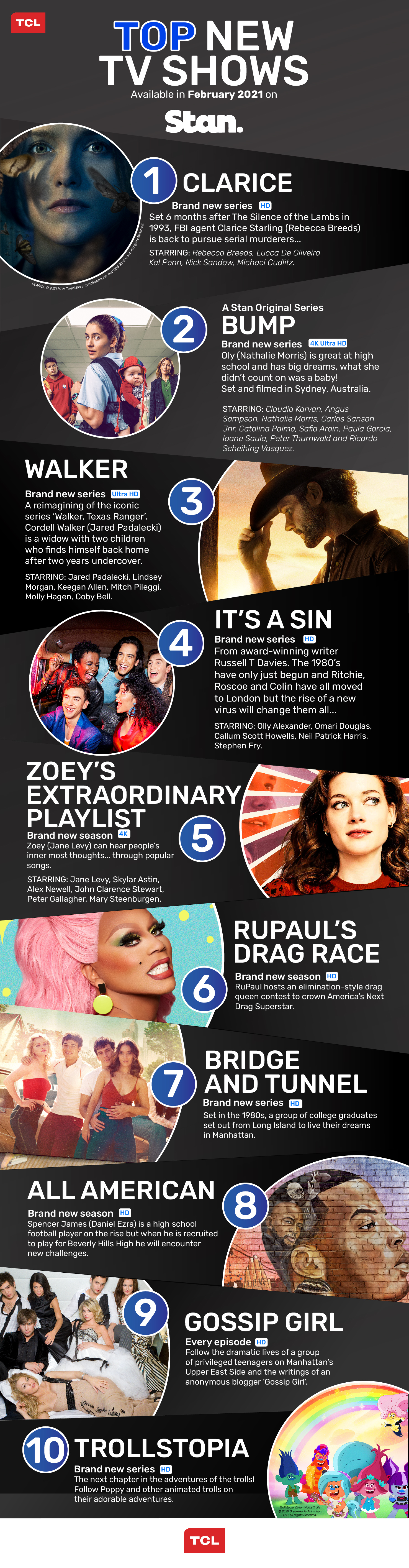 <p><a href='https://www.tcl.com/au/en/blogs/top-new-tv-shows-stan-2021.html'><img src='https://www.tcl.com/content/dam/tcl-dam/region/au/au-mediacenter/blog/tcl-top-new-tv-shows-on-stan-2021.jpg/jcr:content/renditions/original.webp' alt='Top New Shows on Stan for 2021' width='709' border='0'/></a><br /><strong>Created by <a href="https://www.tcl.com/au/en.html">TCL Electronics Australia</a>.</strong></p>