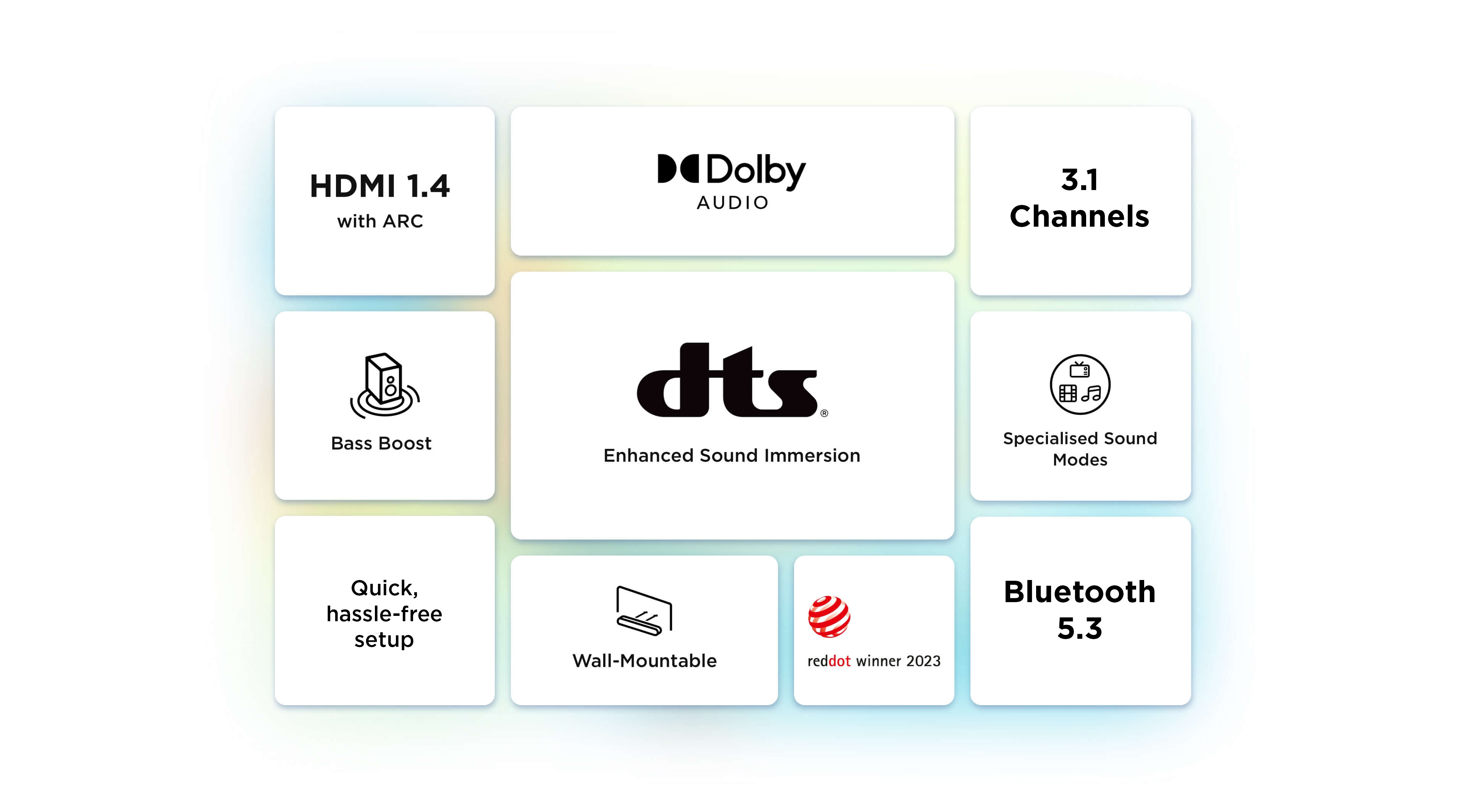 With 3.1 channel, it's now simpler than ever to enjoy a deeper and richer sound with the wireless subwoofer, and bass boost in your living room, and discover the depth and detail of audio.