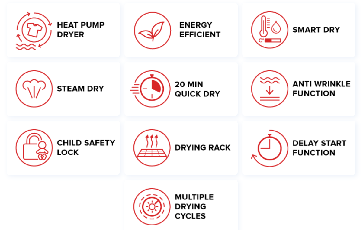 *The 20 Minute Quick Dry feature is designed for small, lightweight loads up to 1kg. Results may vary depending on the type of fabric.