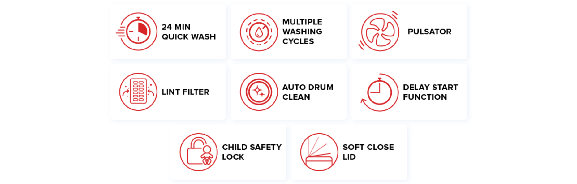 With a large wash capacity, a time-saving quick wash, 8 washing cycles, a 24-hour delay start timer and easy clean features, you'll spend more time doing the things you love.