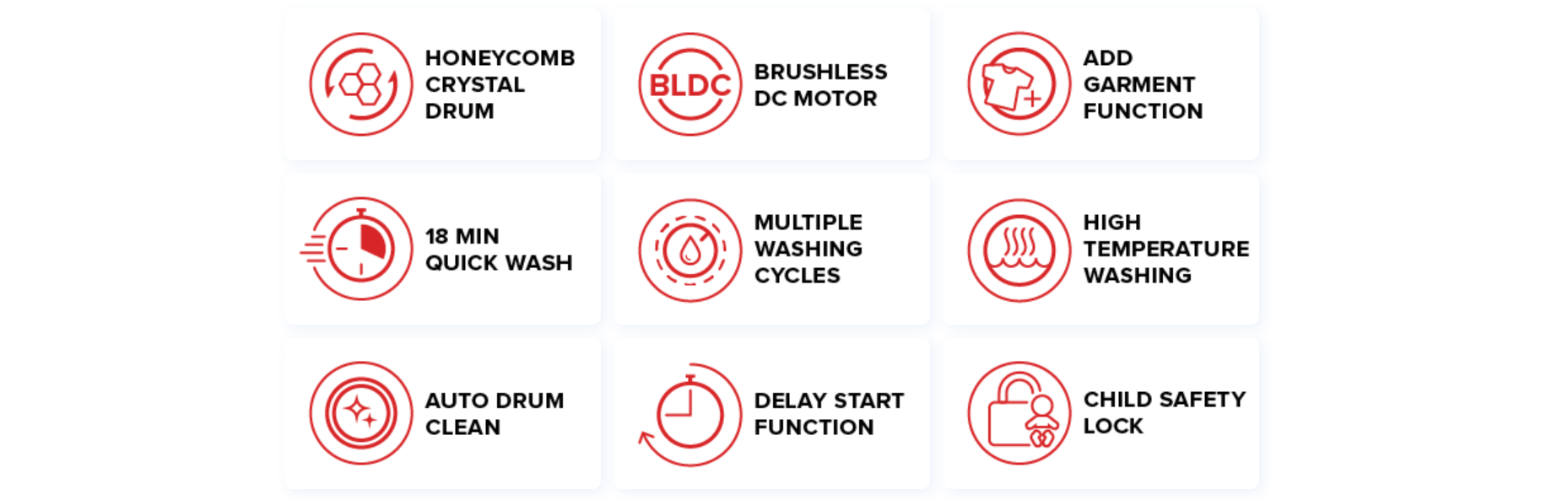 Making sure your clothes are clean and fresh is now easier than ever with TCL's P-Series washing Machines. From a large, innovative honeycomb drum design and a super-quiet Brushless DC motor, to 16 washing programs and an Add Garment Function, you'll discover a range of features that give you a great wash every time.