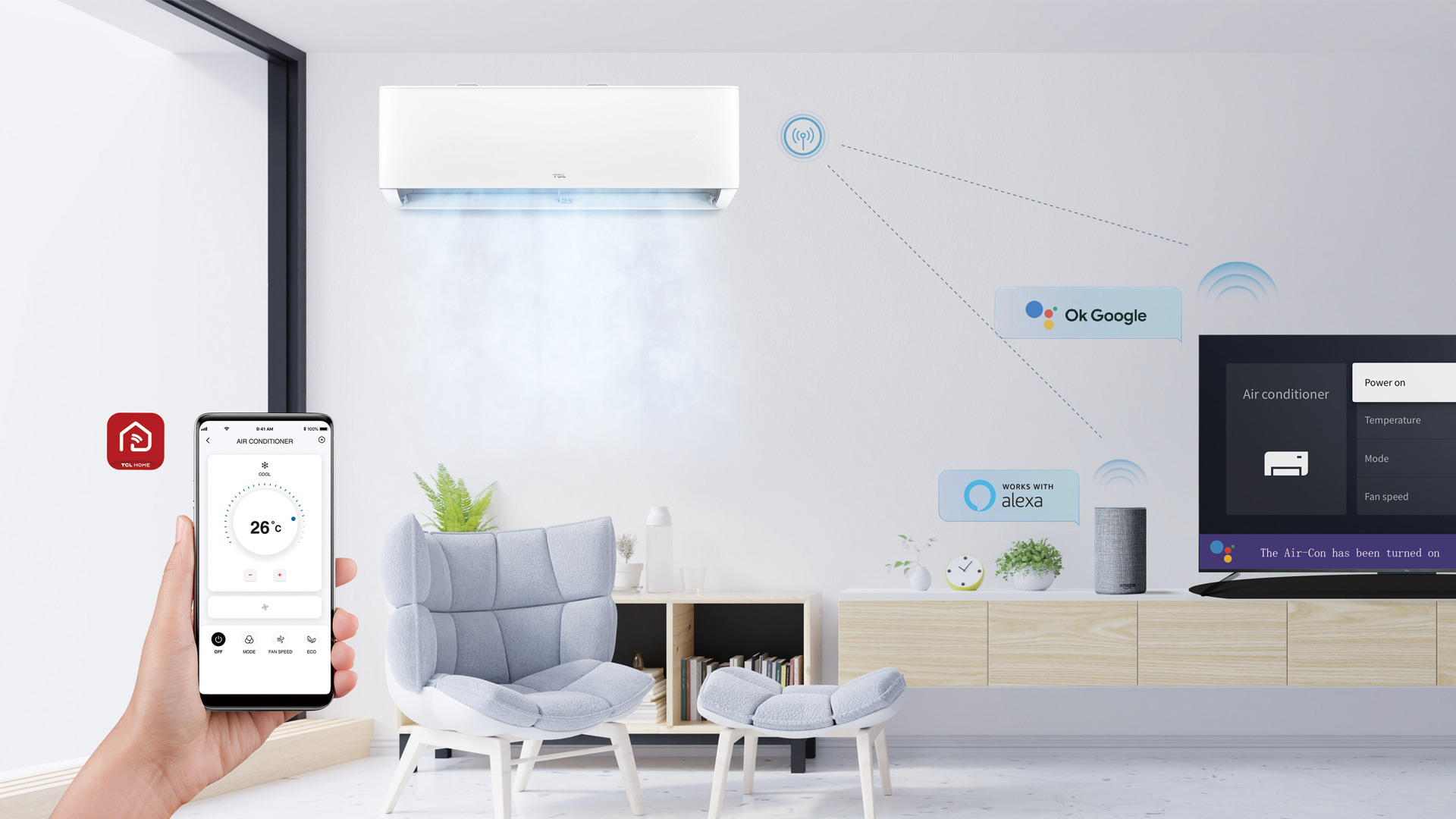 Контролирайте температурата в дома си по всяко време и навсякъде чрез приложението TCL Home или чрез прости гласови команди*.