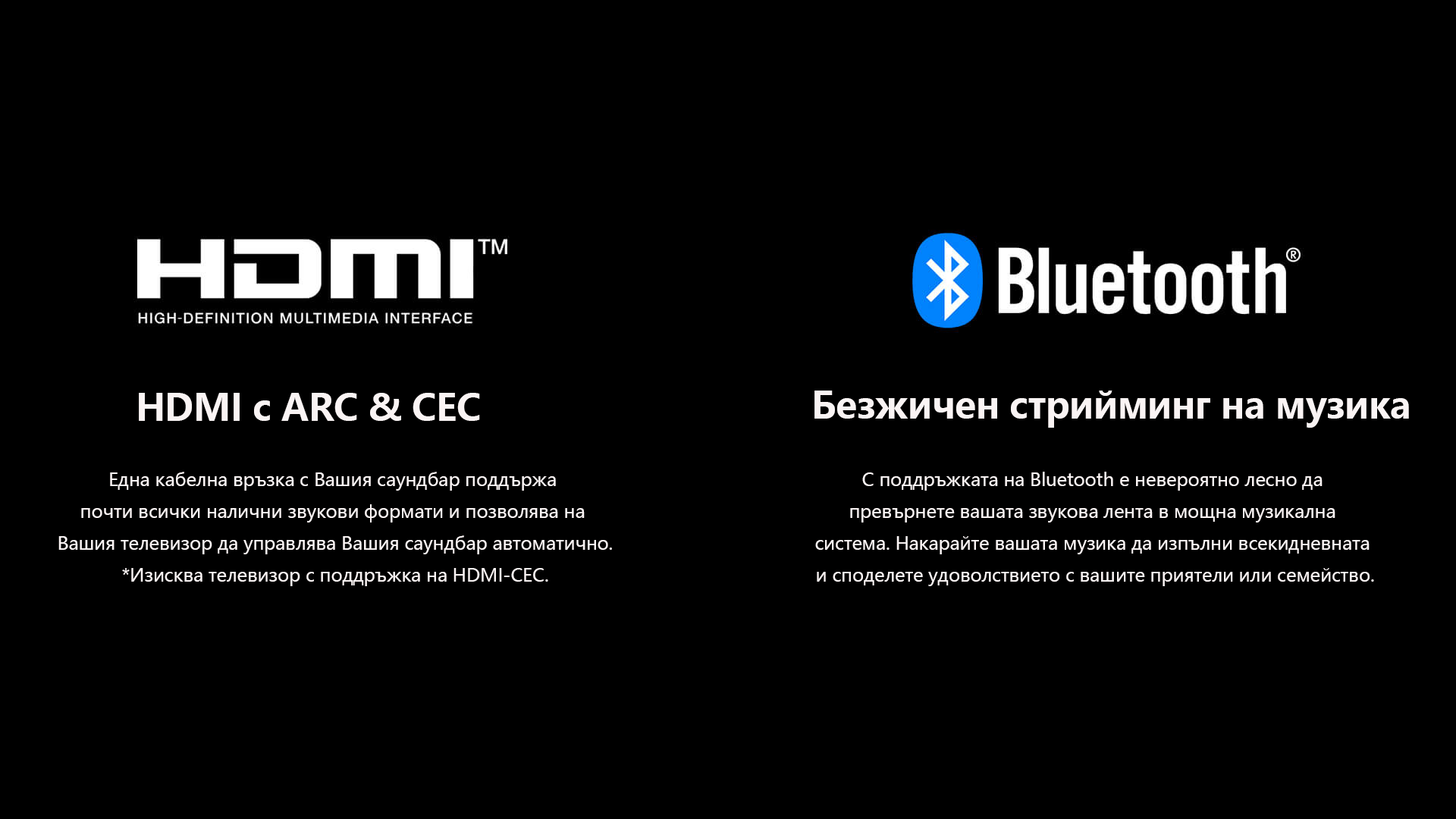 · Входове: HDMI-ARC, оптичен, AUX (3,5 мм), USB