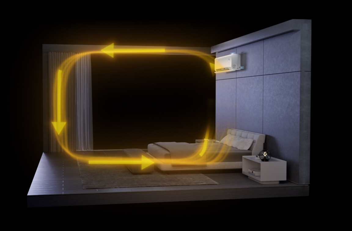 O sistema de redução de ruído quádruplo é o responsável por minimizar o nível do som. Com voluta e ventilador especialmente projetados, a função de ar fresco reduz o ruído em 17%, proporcionando um ambiente de sono mais confortável.