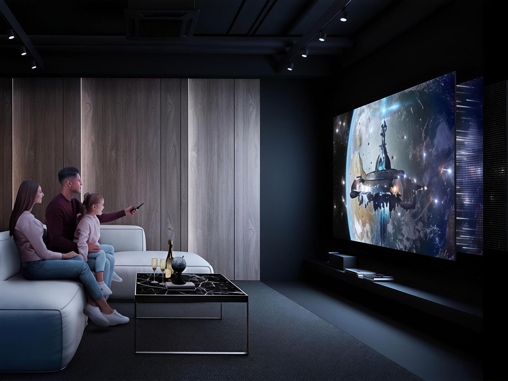 Telas grandes (98" ou 115") aumentam a imersão.