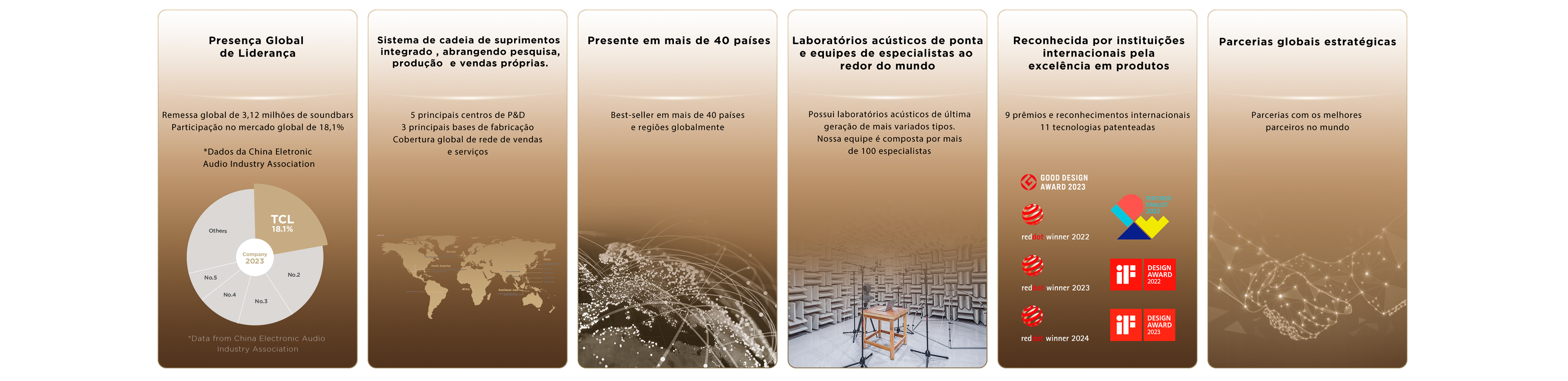 Baseado em alto-falantes direcionais personalizados e ângulo de amplificação, combinado com algoritmos autodesenvolvido de ampliação do som e ajuste refinado de parâmetros, proporciona significativamente melhor som e um efeito surround ainda mais marcante.