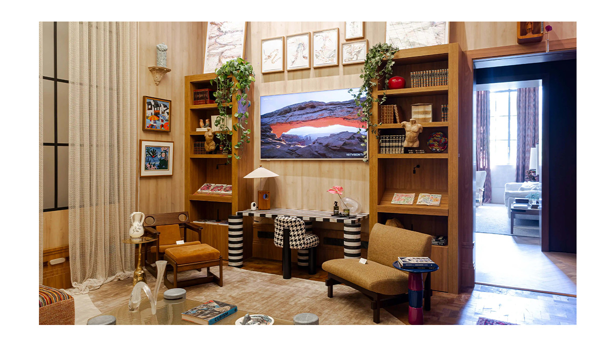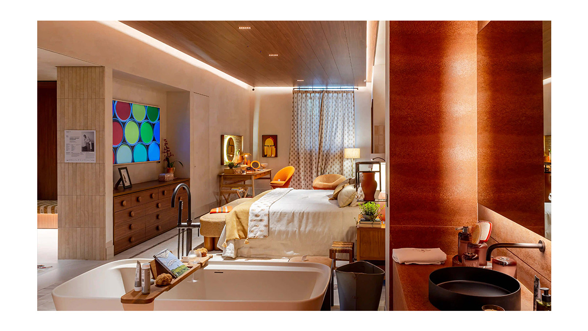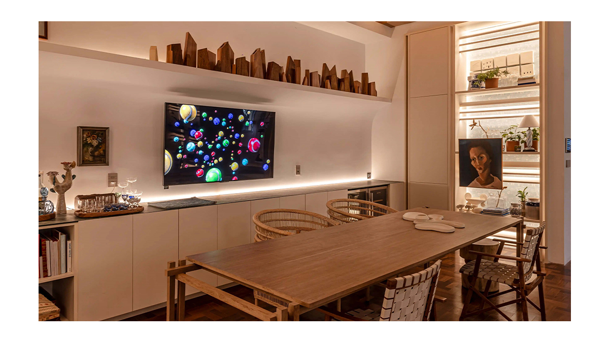 Com tecnologia QD-Mini LED, áudio premium da Bang & Olufsen, tela matte antirreflexo e o recurso Art Gallery, que transforma a TV em um quadro, a TCL eleva a experiência dos visitantes. Todos esses aparelhos foram cedidos pela marca, integrando-se aos projetos de forma harmoniosa.