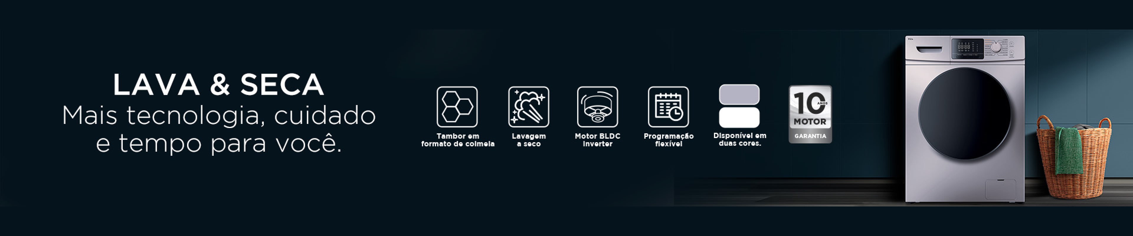 A programação flexível permite que você escolha o horário de uso de acordo com sua rotina. A máquina ainda tem uma série de outras vantagens, incluindo a lavagem rápida em 15 minutos. No modo lava e seca rápido (60 minutos), a lavagem é feita em 15 minutos e a secagem, em 45.