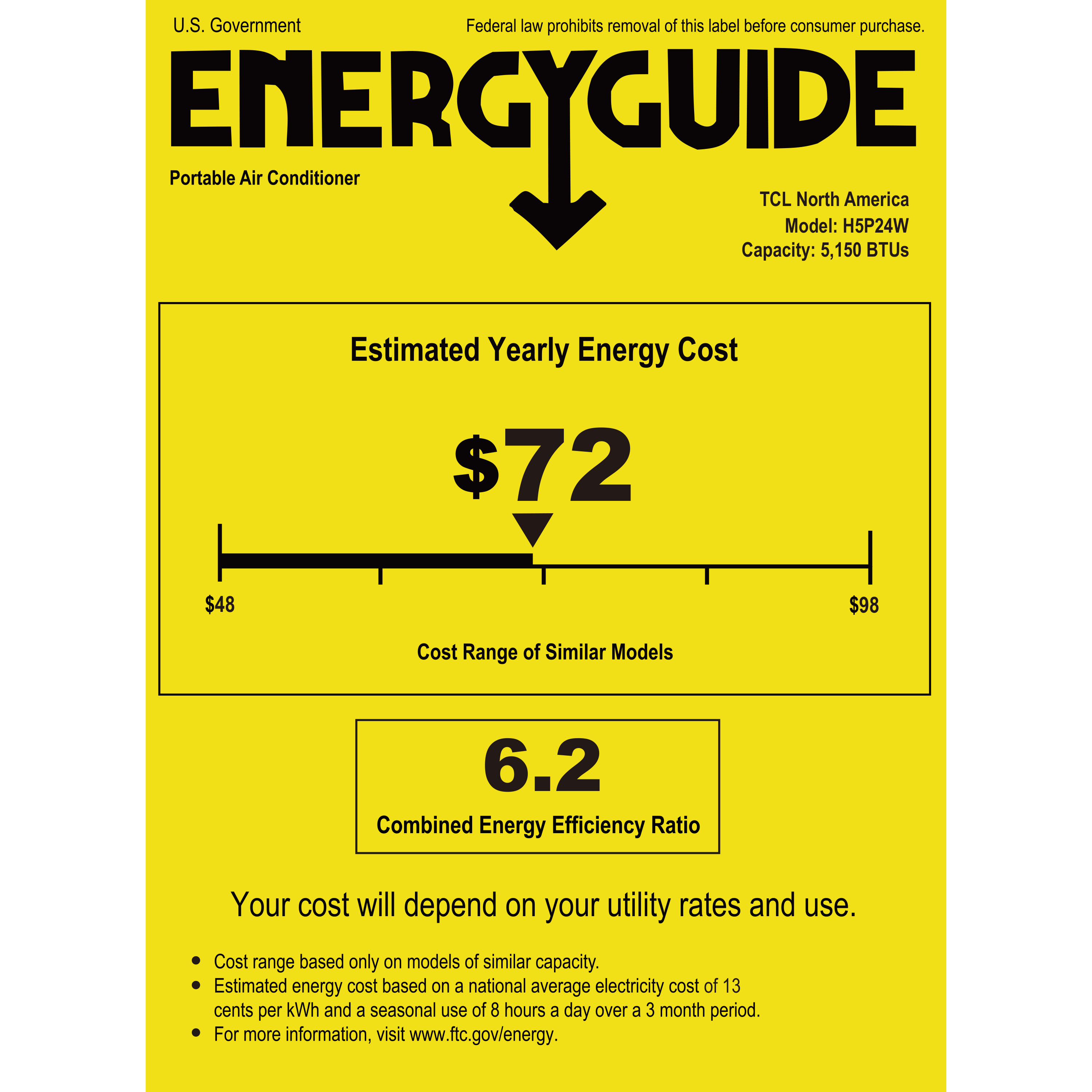 TCL 5,000 BTU SACC (7,500 ASHRAE) Smart Portable Air Conditioner - H5P24W