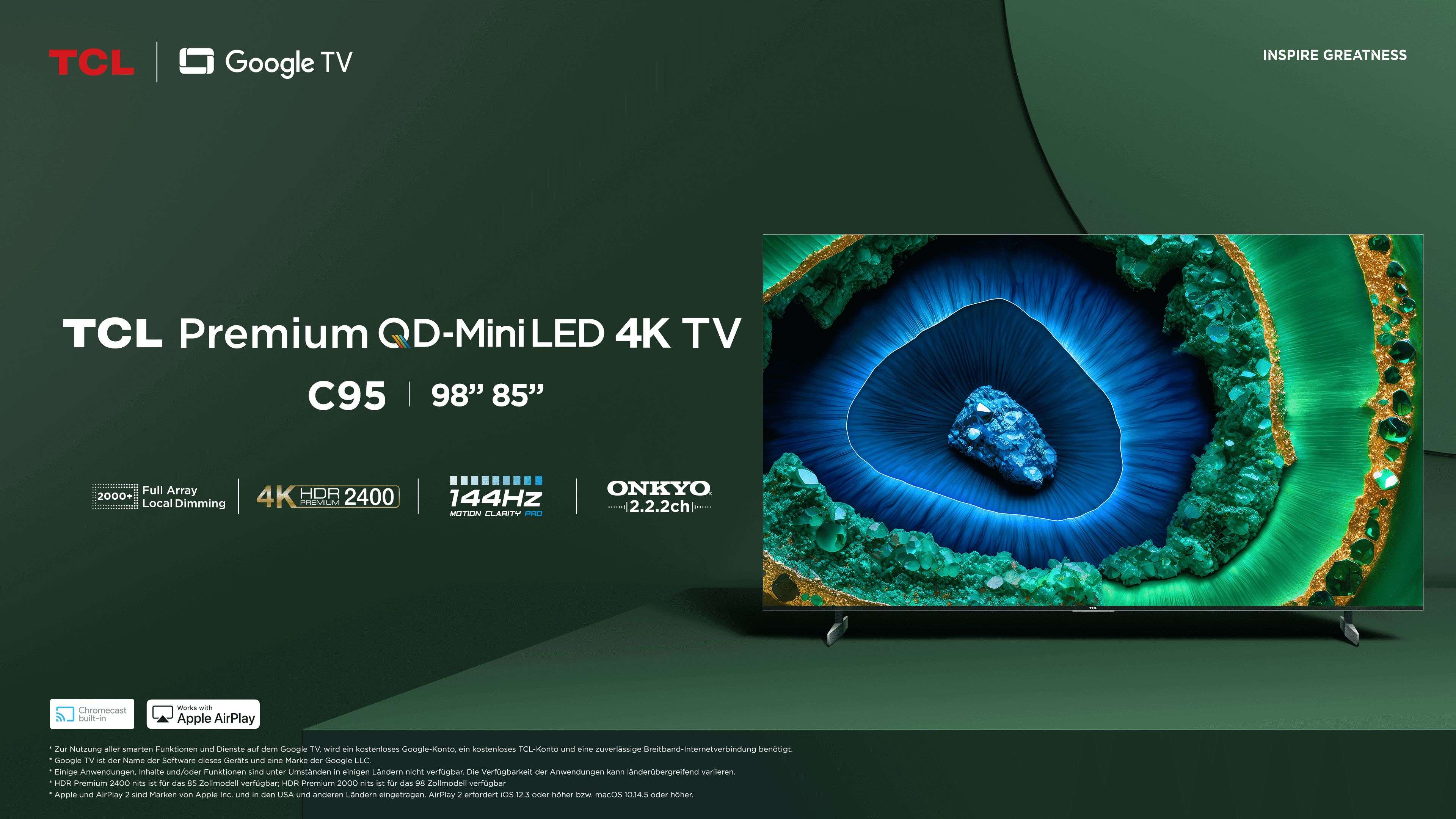 Der TCL C95 ist mit mehr als 2000 lokalen Dimmzonen ausgestattet und sorgen für eine präzise Lichtsteuerung und atemberaubende sowie naturgetreue Details.