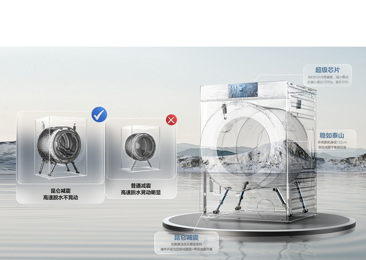如果您刚好在选购洗衣机,不妨考虑TCL的超级筒P7洗衣机。这台洗衣机搭载昆仑减震结构,配置4个减震器以及2个减震吊簧。高速脱水时依然稳如泰山,安静洗衣不扰眠。除了卓越的减震外,它还采用全新研发的超级筒,融合540mm大简径、6D提升筋、海波纹内筒三项核心技术,实现洁净与护衣的统一。