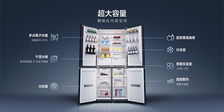全新前置底部散热,应用平稳式门体铰链,0cm无缝式嵌入,成就一体家居美学。90°开合实现自由编写嵌入好设计,处处皆美新生活。全新140μm微孔发泡技术,应用真空隔绝保温材料,580mm超薄机身适配标准橱柜,0.49m²占地节约室内空间。超薄好保温,不挑户型大冰箱。
