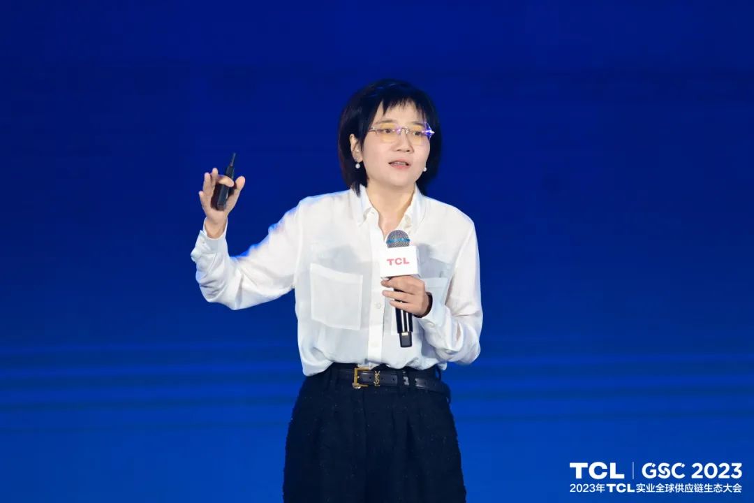 会议伊始,TCL实业CEO杜娟发表了《合势而上,聚力成峰》的主题演讲。杜娟表示,TCL实业愿与全球供应链合作伙伴,共建全球供应链生态,推动生态的共生、共创、共赢。