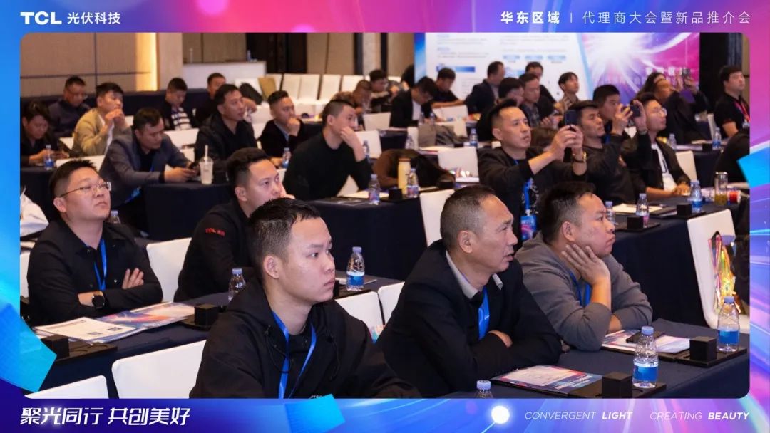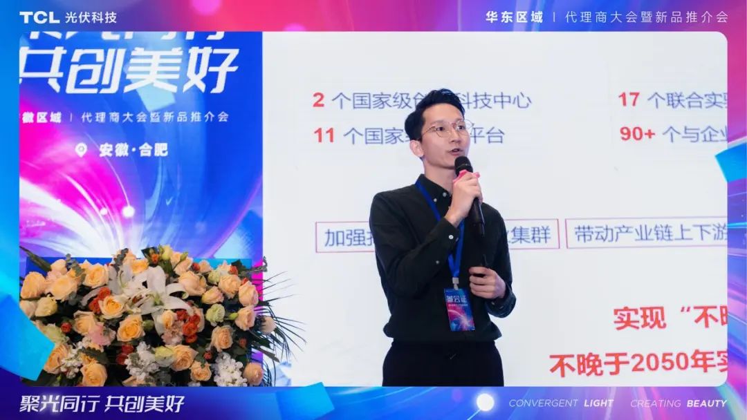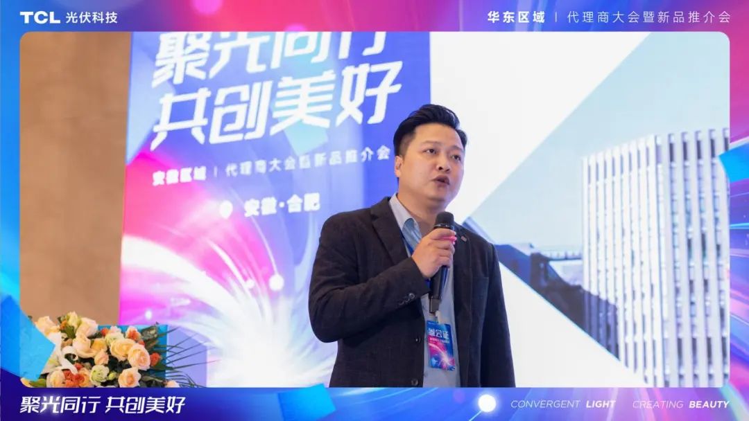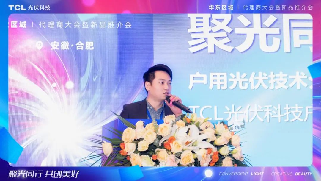 TCL光伏科技TCL光伏科技户用业务中心华东大区总经理黄泽鑫、TCL光伏科技户用业务中心江苏省分公司总经理徐元才、TCL光伏科技市场推广经理李康鸿、TCL光伏科技华东区总监钱勇等领导和嘉宾上台发表了主题演讲,来自安徽地区的100多名光伏同仁参加了此次推介会。