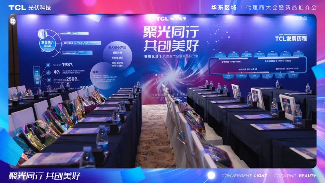 11月6日,由TCL光伏科技主办的“聚光同行 共创美好”安徽区域代理商大会暨新品推介会在合肥洲际酒店举行,通过行业分享、产品推荐、政策宣讲、签约加盟等环节,携手代理商伙伴,为安徽绿色低碳发展增添澎湃动力。