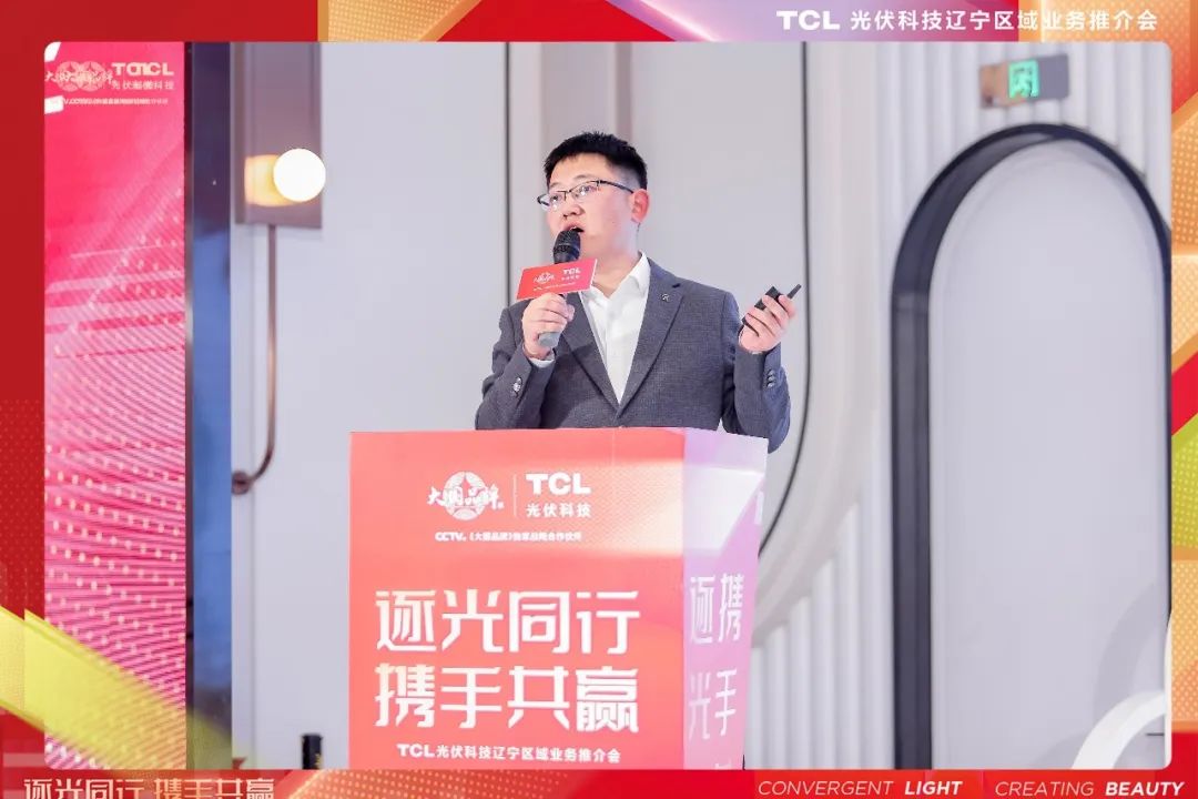 TCL光伏科技辽宁分公司技术扶商经理马毅分享了辽宁区域的户用分布式光伏技术方案。在目前辽宁省的现行方案中,TCL光伏科技的阳明楼、和煦院、明辉顶、双晖顶产品已基本覆盖市面需求,同时针对区域特点,还增加了桁架方案、混装方案等全新技术方案,并在现行方案的基础上,补充了多种特殊方案,以更好地满足区域用户的需求。辽宁分公司业务负责人王琦从多样化产品及代理商政策优势方面阐述了TCL光伏科技对与合作伙伴携手共赢的决心与信心,同时,现场签约的代理商,可额外享受招商会大礼包,及多种活动钜惠。