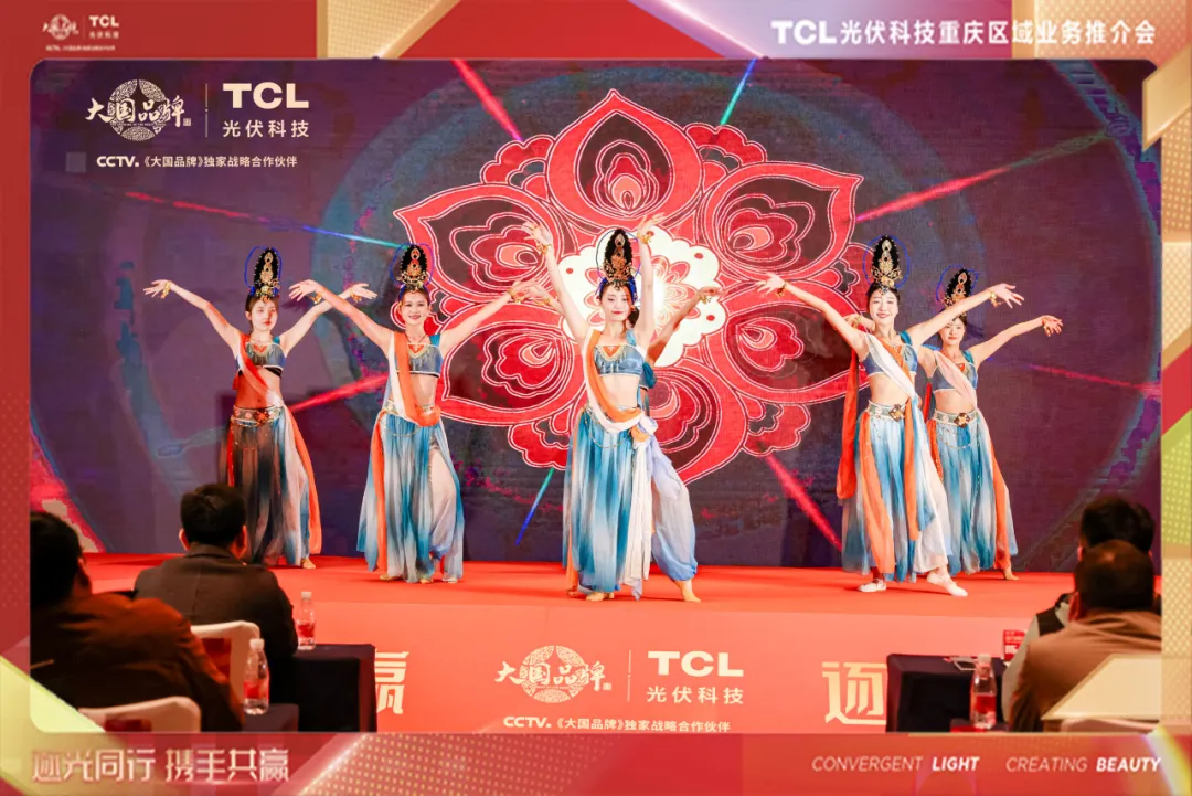 会议正式开场前,一场别开生面的“飞天”舞蹈精彩上演,为“逐光同行,携手共赢”TCL光伏科技重庆区域业务推介会拉开帷幕。