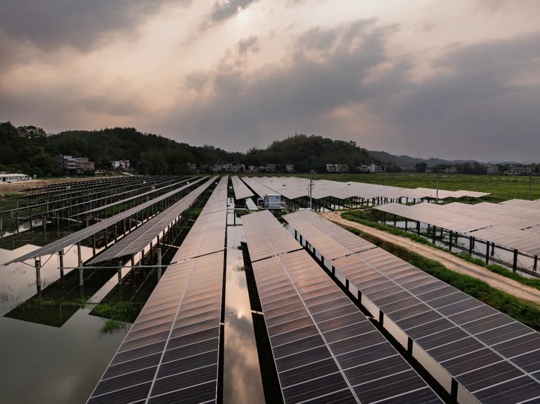 除普通户用项目外,TCL光伏科技还积极探索“光伏+”在广东的应用。该公司位于广东梅州五华的20mw(一期6mw)地面分布式光伏电站项目通过租赁兴中村荒地,用于农光、渔光互补光伏发电,占地约110亩。按照“水上发电、水下种养”和“一种资源、两个产业”的集约发展模式,鼓励农民在光伏板下种植金银花、广藿香等药材并养殖小龙虾、塘鲺、草鱼等水产。预计让当地60多户农户得到年均土地租赁收益600元,年均增加村集体收益约6000元,并带动30余人实现就地务工。