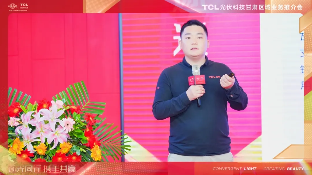 TCL光伏科技商用业务中心西北大区开发经理武鹏涛分享了TCL光伏科技工商业光伏业务的前沿技术和方案解读。目前,TCL光伏科技能够向工商业主提供包括合同能源管理(EMC)、业主自投(EPC)、零碳惠(EFC+F)及全额上网等多种合作模式,全面覆盖传统BIPV、地面分布式电站、工商业储能、“光伏+”等多种应用场景,满足工商业主多元化的需求。