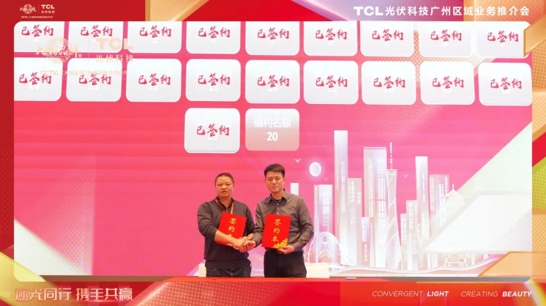 在会议的最后阶段,众多经销商纷纷积极与TCL光伏科技进行现场签约,这一壮观的场景无疑再次确认了TCL光伏科技在业内的卓越影响力及综合实力。