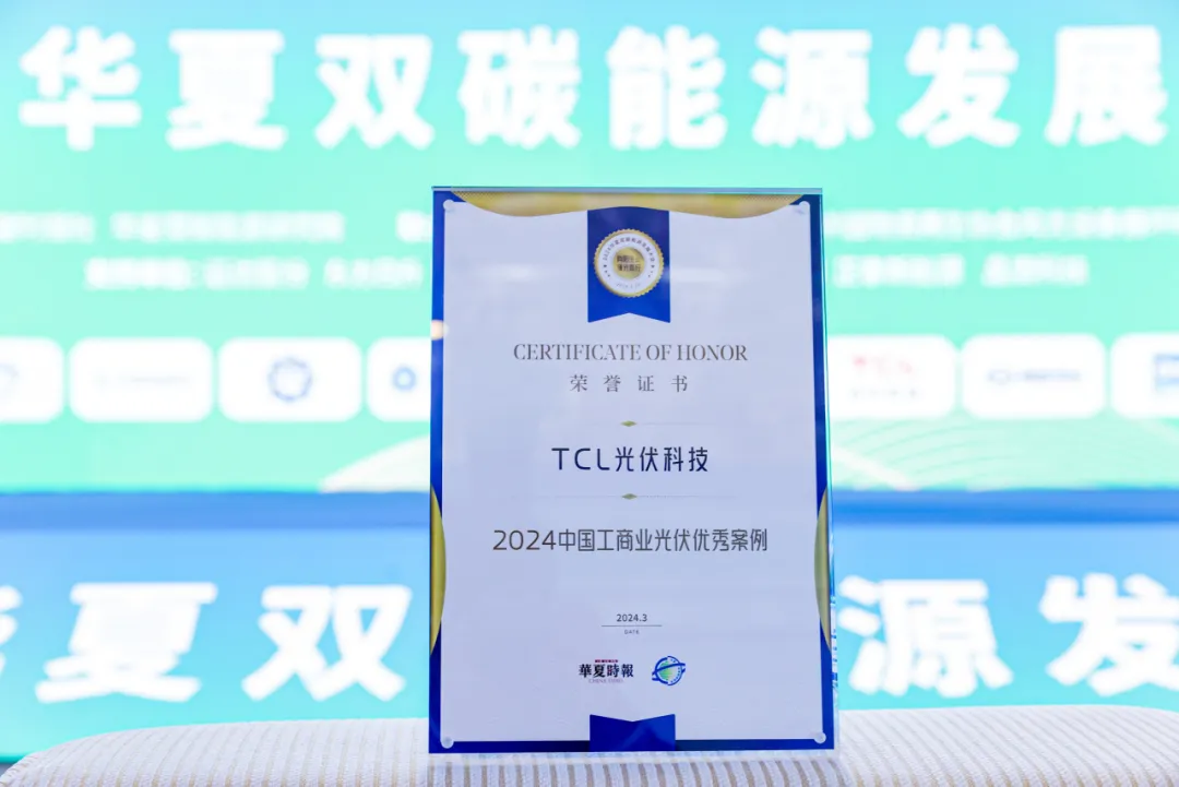 继3月初喜获3项大奖之后,本月TCL光伏科技再度斩获两项殊荣。3月28日,在《华夏时报》和华夏双碳能源研究院联合举办的“向阳生长 逐光而行——2024华夏双碳能源发展大会”上,TCL光伏科技将“2024中国工商业光伏优秀案例”和“2023中国分布式光伏品牌影响力企业”两项荣誉收归囊中。至此,TCL光伏科技2024年以来获得的各类奖项已达14座,奖项分别来自政府、媒体、行业协会等各类机构,凸显了机构们对TCL光伏科技过去一年来所取得成绩的高度认可。