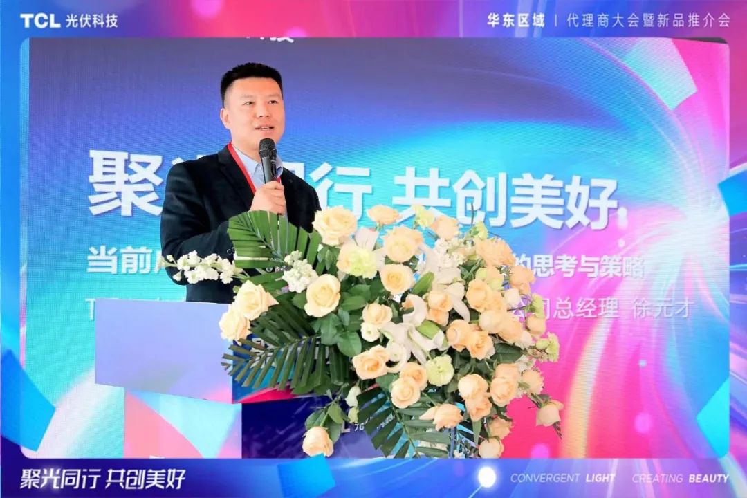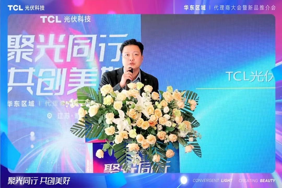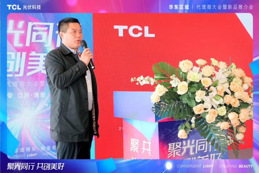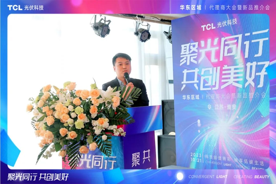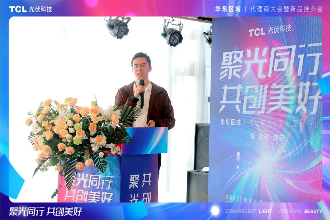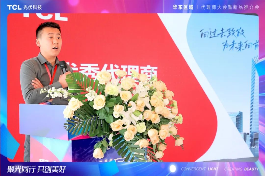 TCL光伏科技户用业务中心华东大区总经理黄泽鑫代表华东团队为本次推介会致辞。黄总表示,TCL光伏科技一直致力于提供高质量、高效率的光伏产品和解决方案,助力广大代理商及农户实现清洁能源转型和可持续发展。在市场开发过程中,TCL光伏科技注重与各级代理商和合作伙伴的紧密合作,在今后的市场拓展中,TCL光伏科技将持续加强与各级代理商的沟通和合作,为大家提供全方位的支持和帮助,共同开拓市场,共享发展成果。