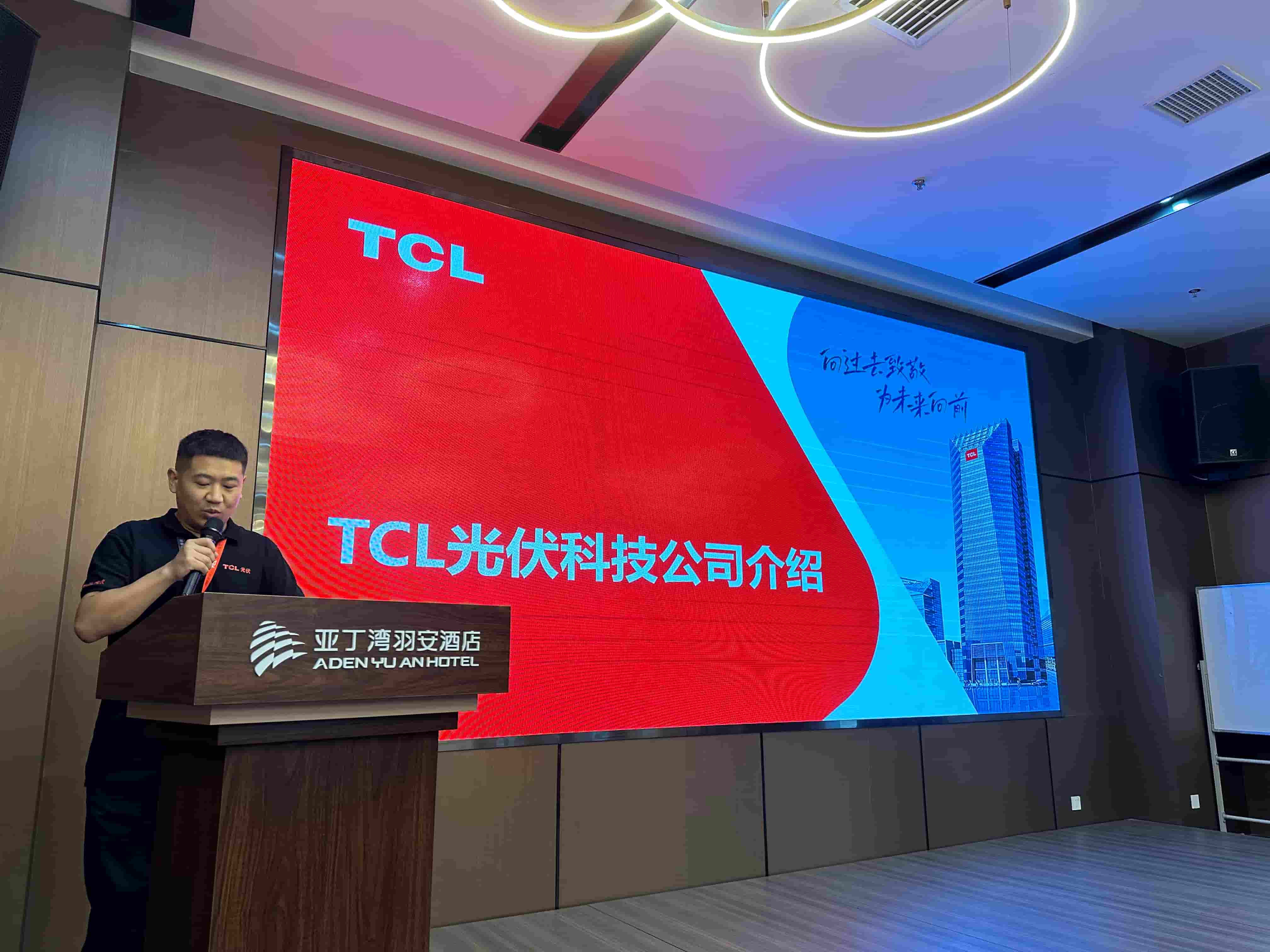会议伊始,TCL光伏科技户用业务中心陕西省分公司项目经理曹顺向大家介绍了TCL集团发展历程及整体情况,并从海量代理商资源、全链条平台运营能力、强大的供应链资源、智能运维快速响应、成熟的工程设计以及施工经验、充足的项目储备等方面详细介绍了TCL光伏科技的六大核心优势。同时,曹经理在会上详细讲解了户用业务各款产品的特点及优势,并向与会的代理商伙伴传达了TCL光伏科技合作共赢的开放态度和战略目标。