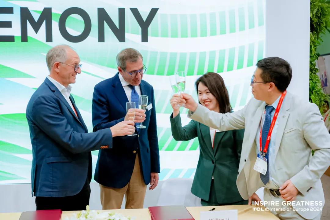 法国巴黎银行个人金融公司全球零售和能源转型负责人Guillaume Muselet先生、Consors Finanz首席执行官Michel Thebault先生,TCL光伏科技CEO何雁飚女士、海外业务中心总经理李俊先生、机构业务部部长罗飞女士等嘉宾共同出席此次签约仪式。