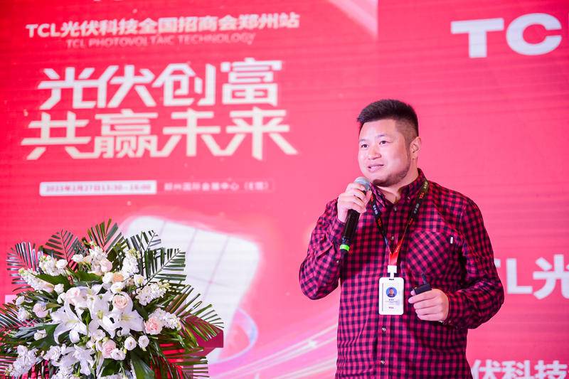 随后,TCL光伏科技河南总经理杨茂林从当下市场开发机遇、安装商实际需求发表了对于户用市场发展的观点,并围绕TCL光伏科技产品、招商政策发表演讲,以“六脉神剑”向大家展现了TCL光伏科技的核心竞争力。TCL中环+TCL光伏科技产业链条的一体化使得TCL自身拥有上游的产业链优势;在供应链方面,B2C模式以及RDC+代管仓模式凸显;同时TCL光伏已与四大行、股份制银行、外资行、各大金租、商租赁公司及国央企开展深度合作,拥有强大的资金矩阵;TCL光伏科技代理政策占压资金底、提货高杠杆、资金高流转,优势明显;TCL光伏科技拥有卓越的基础架构和智能监控运维平台。TCL光伏科技在自身优势的基础上针对不同地区、不同房型推出了“光盈宝”、“光富宝”、“光鑫宝”多样化的产品,给农户提供更多选择,代理商轻松获客。