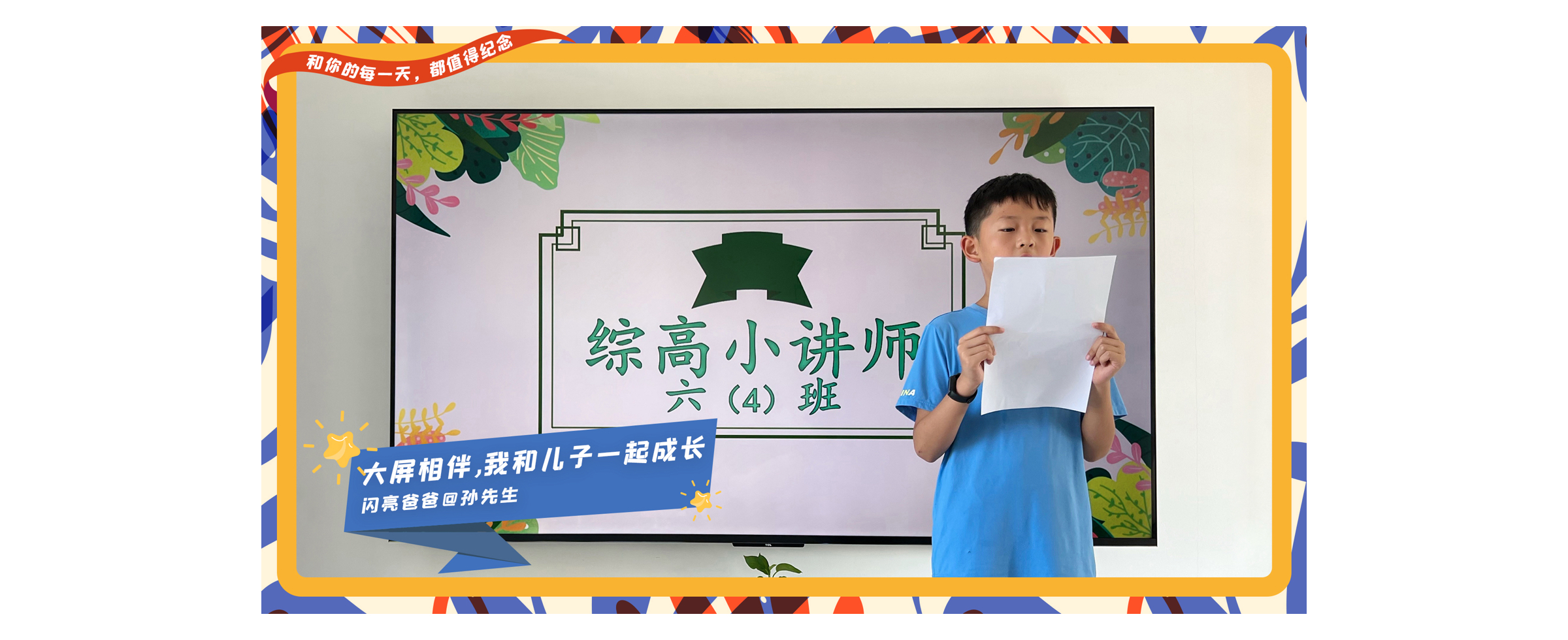 其实那天,看着他借用电视大屏做演讲的画面,我就特别想跟他说:转眼间,你已经长大了,有自己的想法了啊。你能把想法精彩地讲述给我们听,爸爸特别欣慰。娃,我们一起努力,一起成长吧!