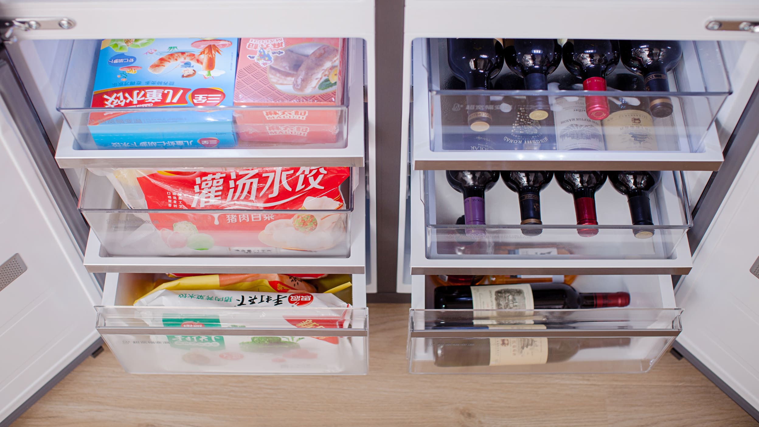 这款冰箱搭载了“独立三系统”,配备的三个蒸发器使其拥有了宽幅变温功能。除了传统的冷藏冷冻模式,下层两个储存室可根据每日不同需求自由调节温度。将空间可利用率最大化,每个角落都不浪费。