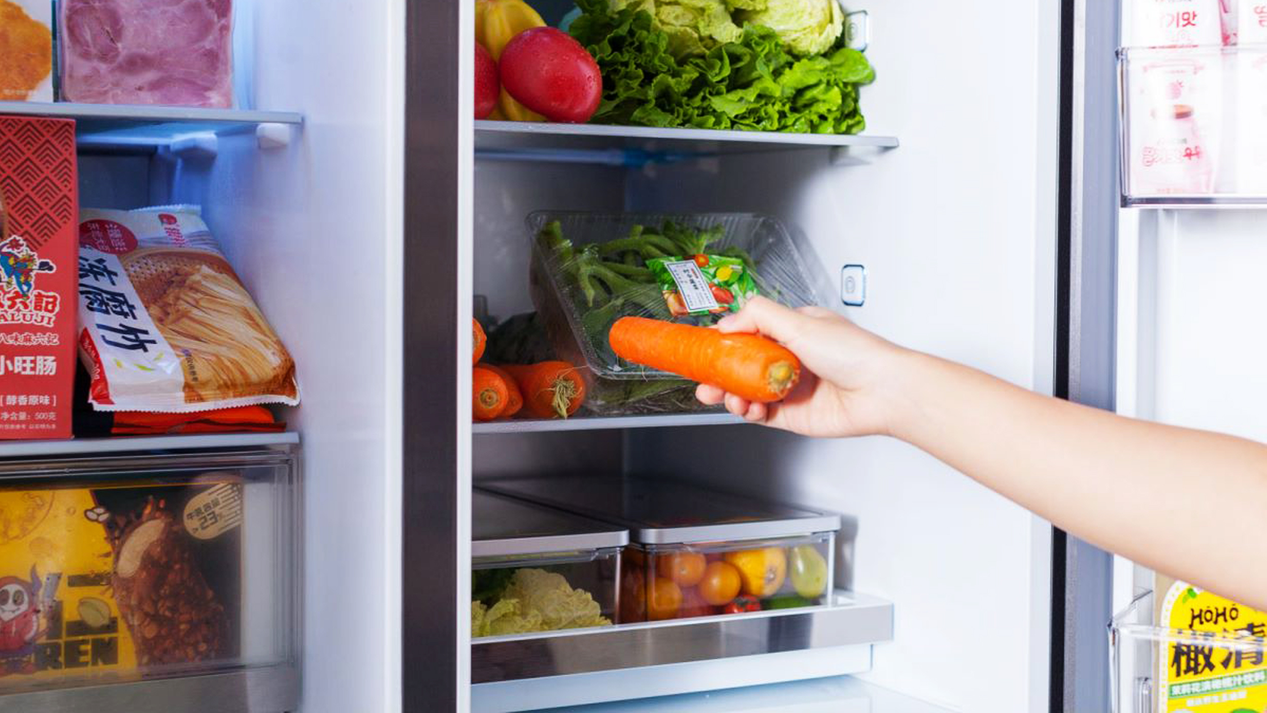 自由变温室的存储空间之大,足足有210L。单独为孩子准备的食材、老公的饮料零食、我自己的美容护肤品等,都可以根据储藏温度需要进行分区存放。
