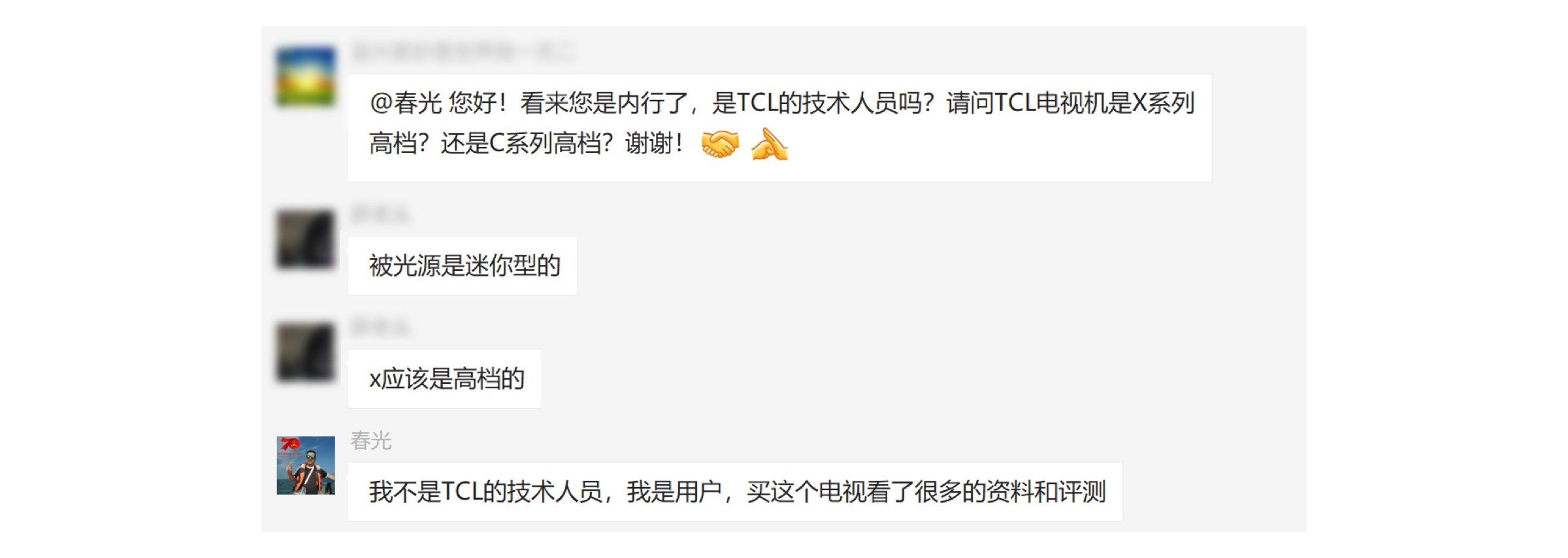 既不是TCL员工,也不是产品经理的他,说起电子产品却头头是道。特别是在群里给小伙伴聊起TCL时,他显得特别专业。