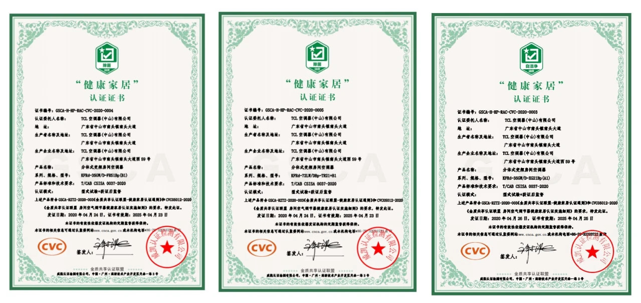 2020年4月,TCL空调智慧柔风系列产品斩获金质共享认证联盟颁发“健康家居”证书。