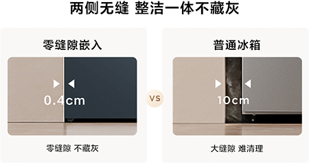采用平稳嵌入式铰链设计,两侧无需预留过多开门空间,即使嵌入橱柜或贴墙摆放,也能90°开门轻松拿取食材。
