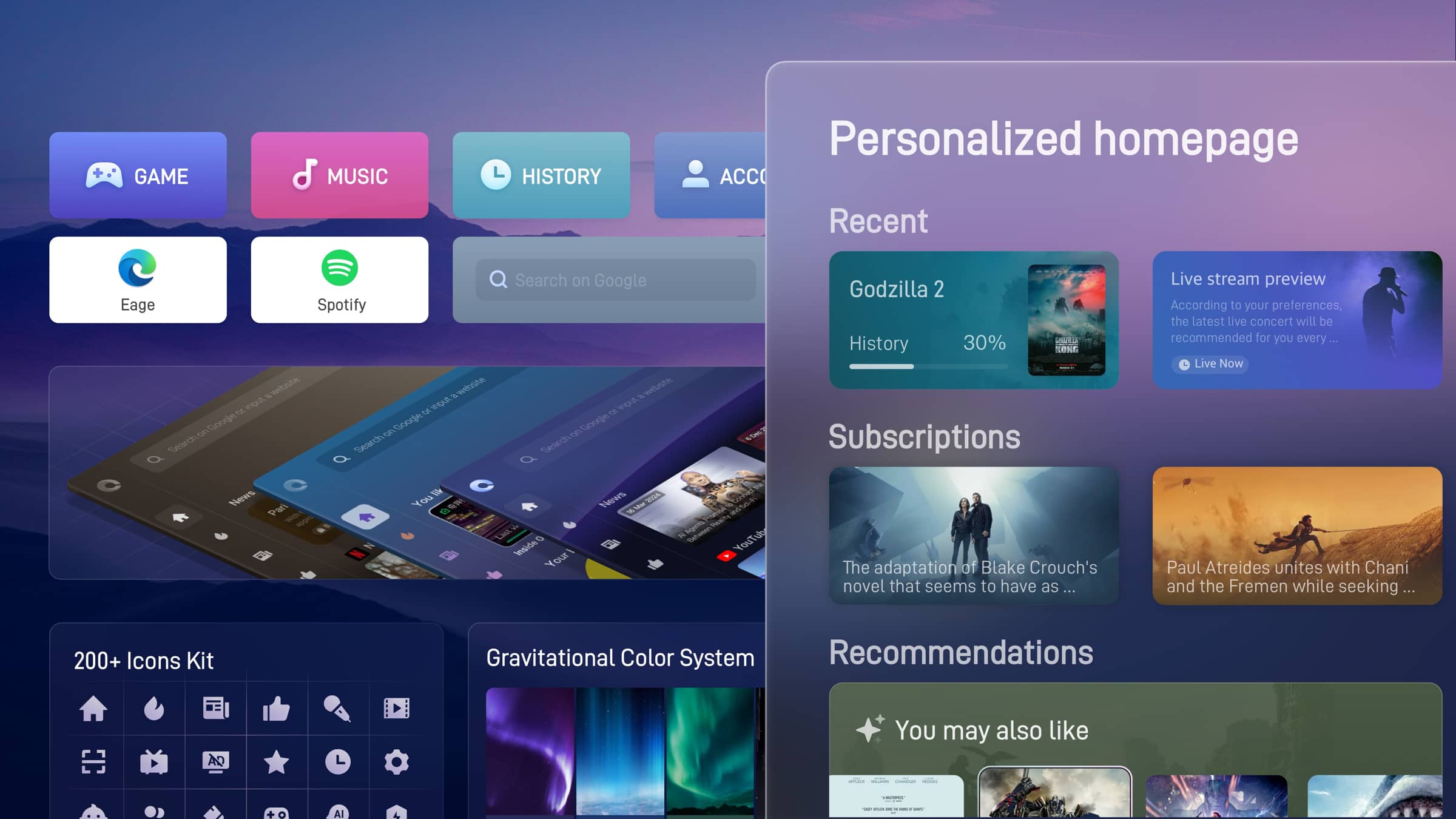 TCL BrowseHere 的多账户家庭功能匠心独运,为每位家庭成员量身打造独特的界面主题,每次切换皆带来焕然一新的视觉盛宴。用户可依据个人喜好订阅内容,收获精准贴心的个性化推荐。为解决电视输入难题,我们融入尖端语音技术,即便语音描述模糊不清,亦能实现精准搜索,智能无界。而为优化电视端的网页交互体验,我们精心设计了一款便捷工具栏,基于用户高频操作习惯,仅需遥控器单键即可轻松畅游网络,尽享流畅与高效。
