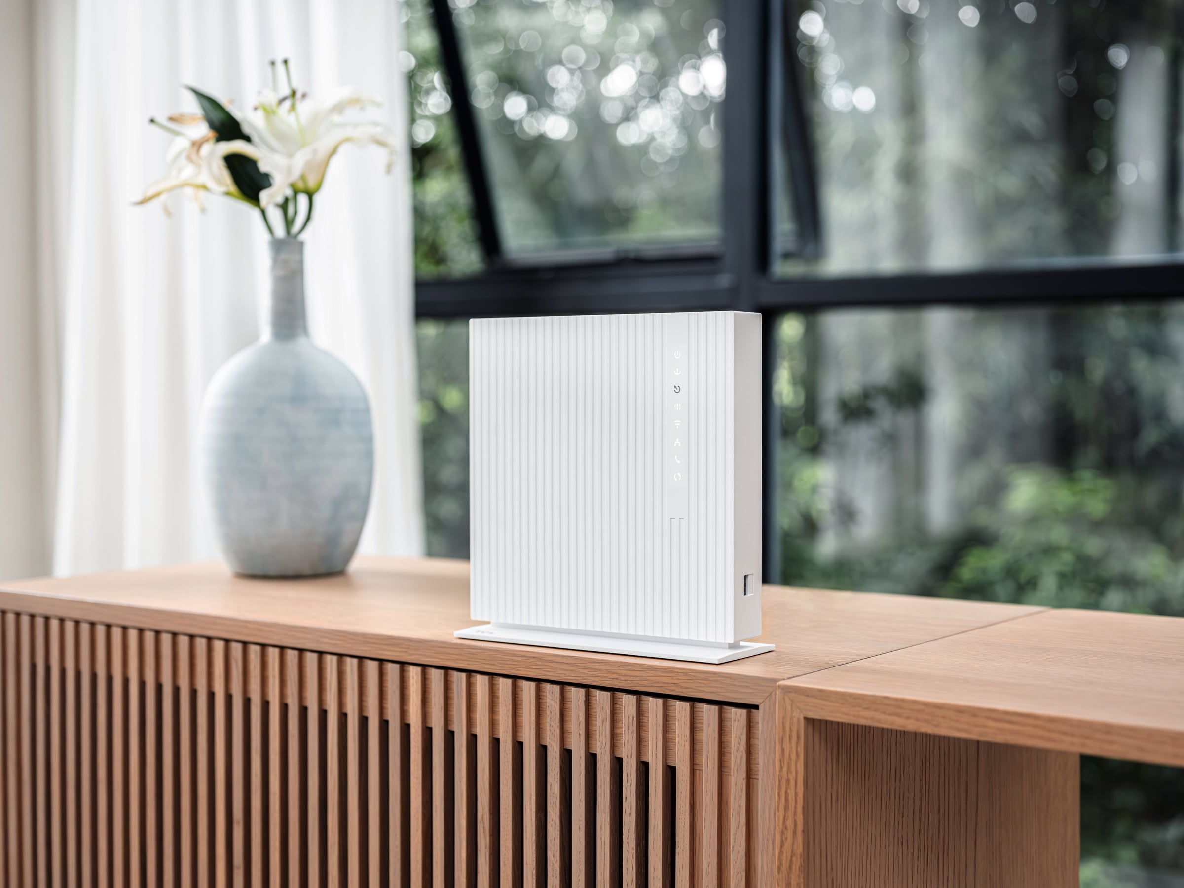 Bamboo forests served as inspiration for the design of the TCL Fiber Gateway Family, whose slim grid elements improve heat dissipation.
